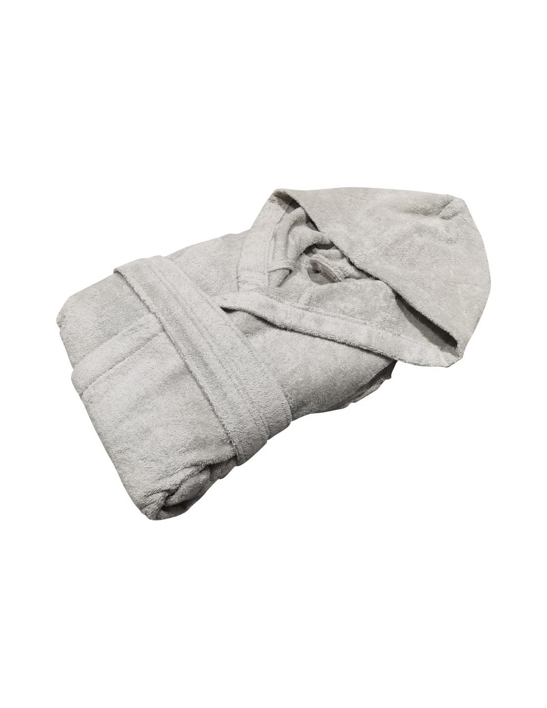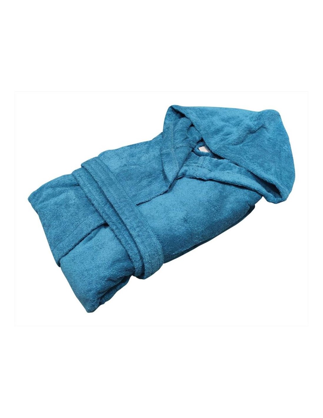 L'Accappatoio Dea con Cappuccio in Spugna di Puro Cotone Tinta Unita. La Spugna è soffice e piacevole al tatto, il peso è di 460 gr/m².