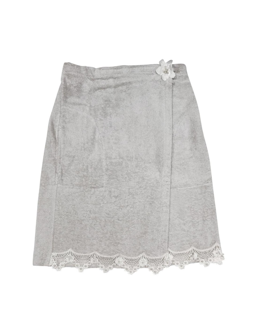 PAREO IN SPUGNA DI COTONE RIFINITO CON PIZZO E APPLICAZIONE