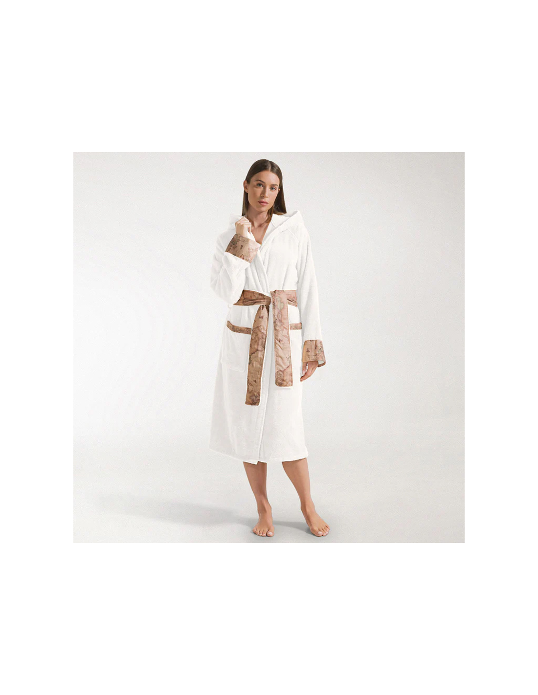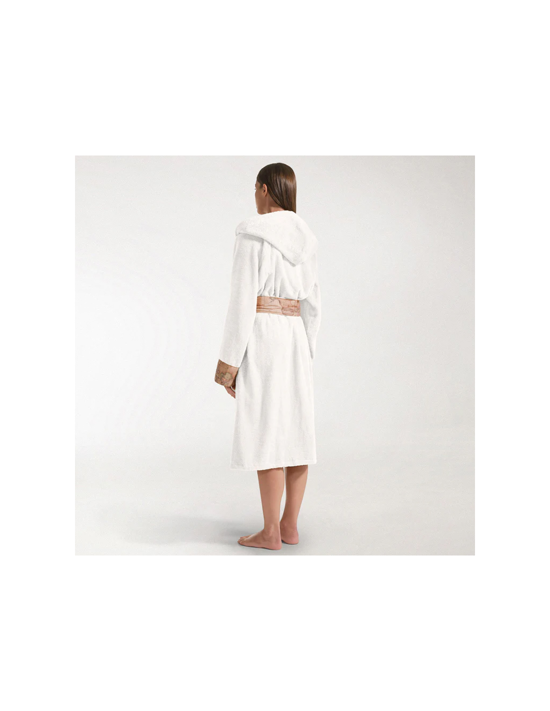 morbido tessuto in spugna di cotone, l'accappatoio con cappuccio rifinito dagli