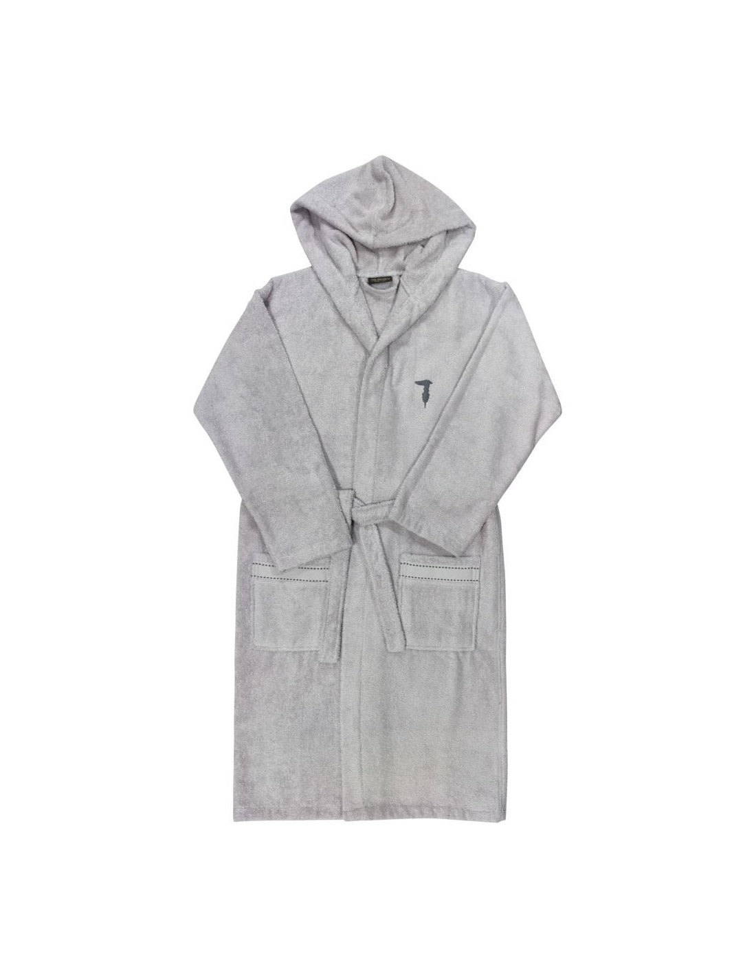 Accappatoio Trussardi con cappuccio e tasche in spugna di cotone idrofilo.