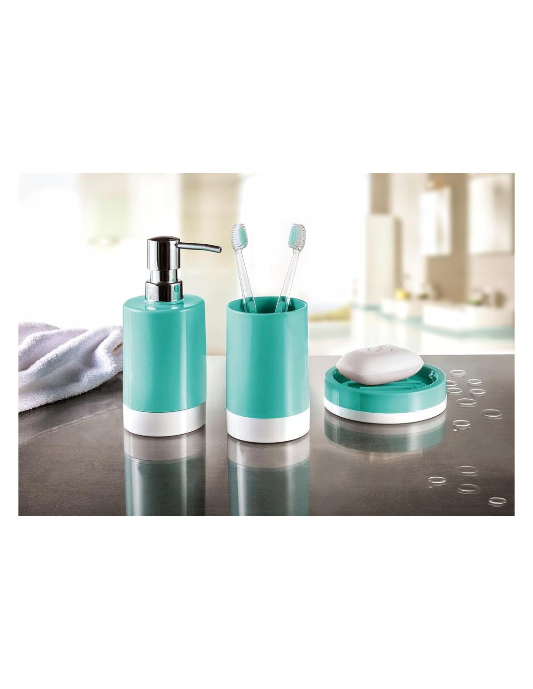 KIT BAGNO PORTASAPONETTA DISPENSER SAPONE E BICCHIERE SPAZZOLINO MADE IN GERMANY