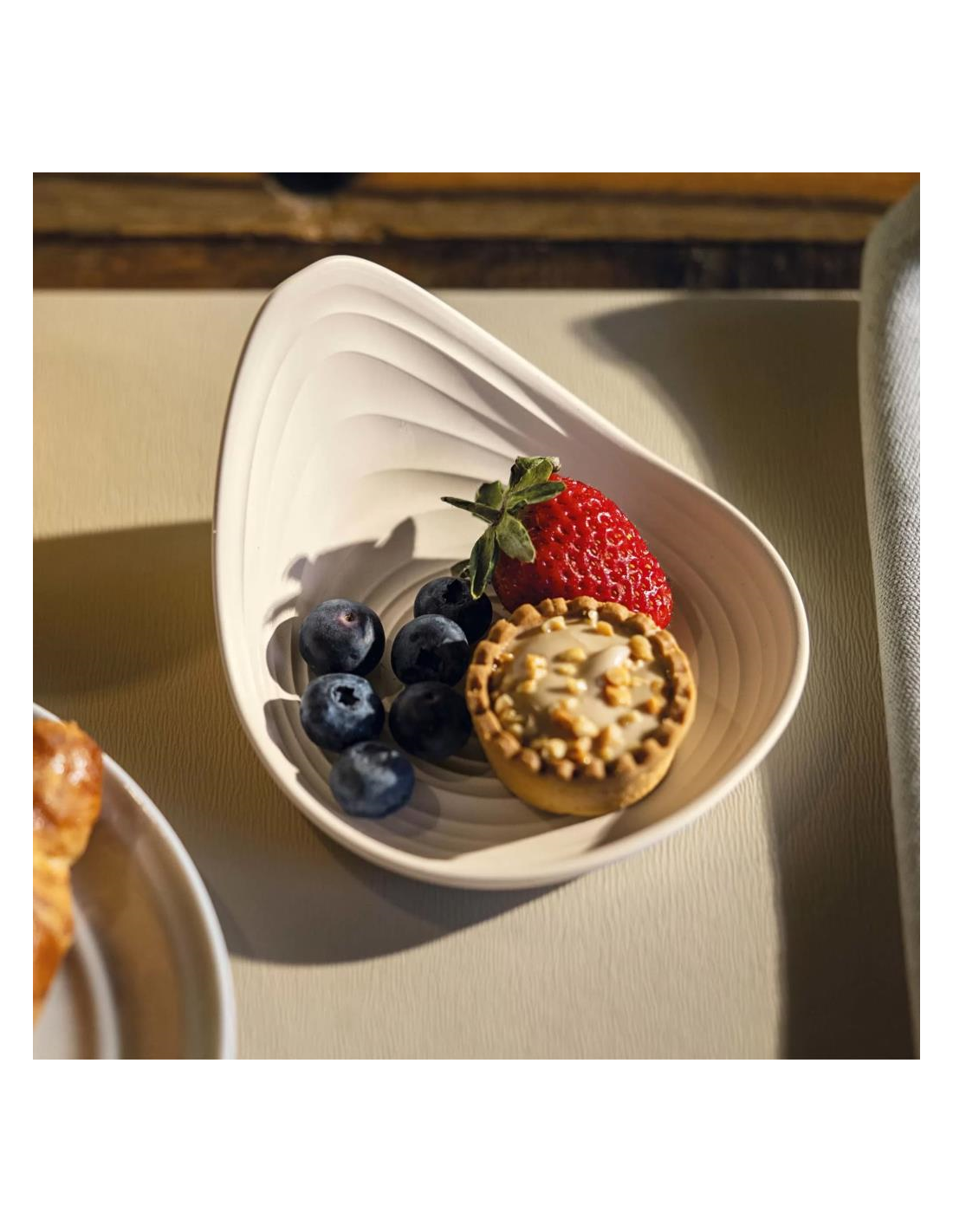 Il porta-snack, un piattino rotondo con un’ala laterale che è la