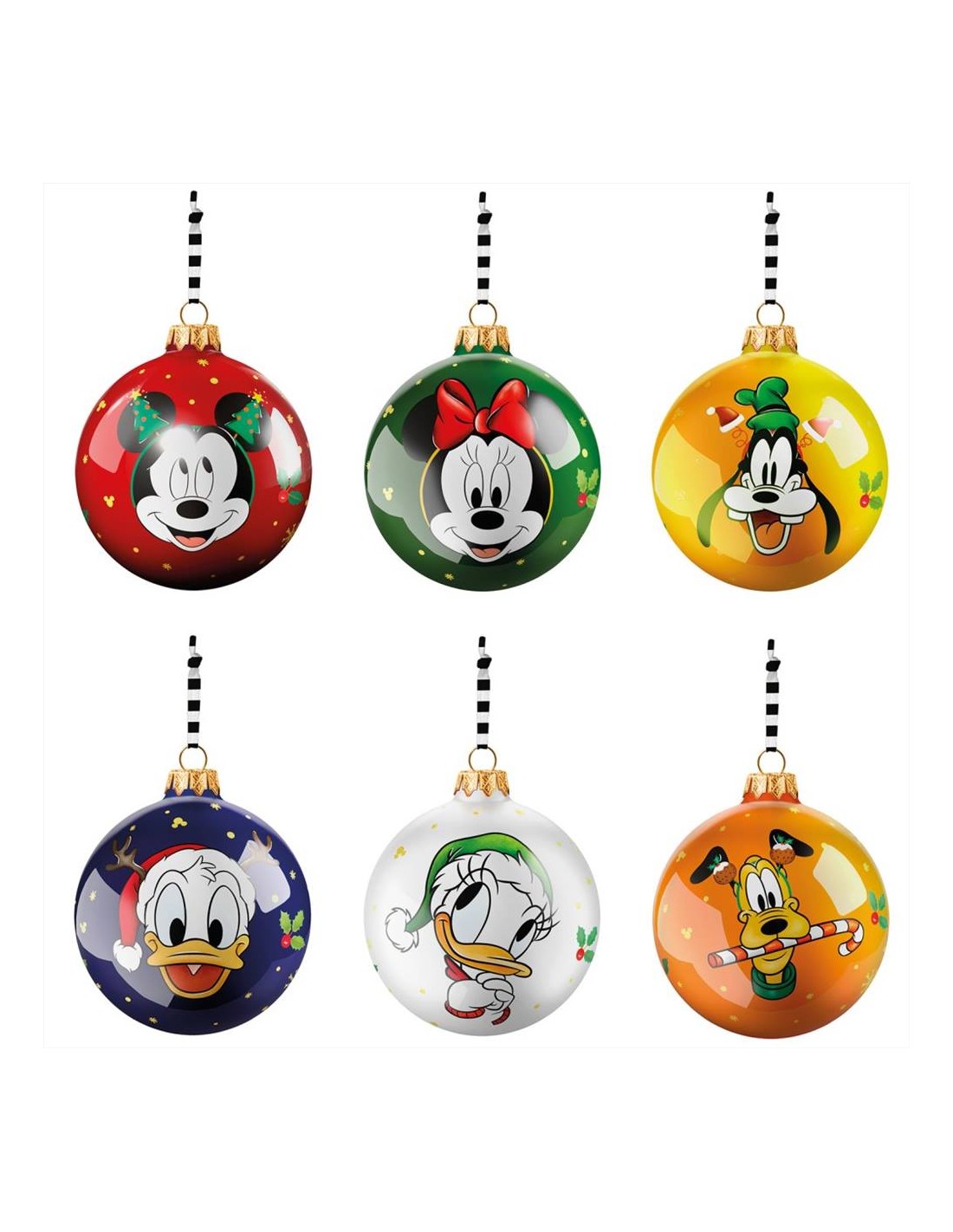 Sulla pallina sono rappresentati gli iconici personaggi Disney: Mickey, Minnie, Donald, Daisy, Goofy e Pluto
