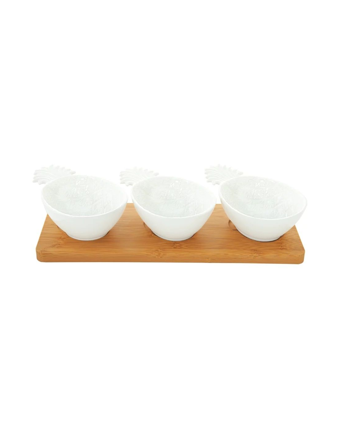 Vassoio in legno e 3 ciotole in porcellana a forma di Ananas con