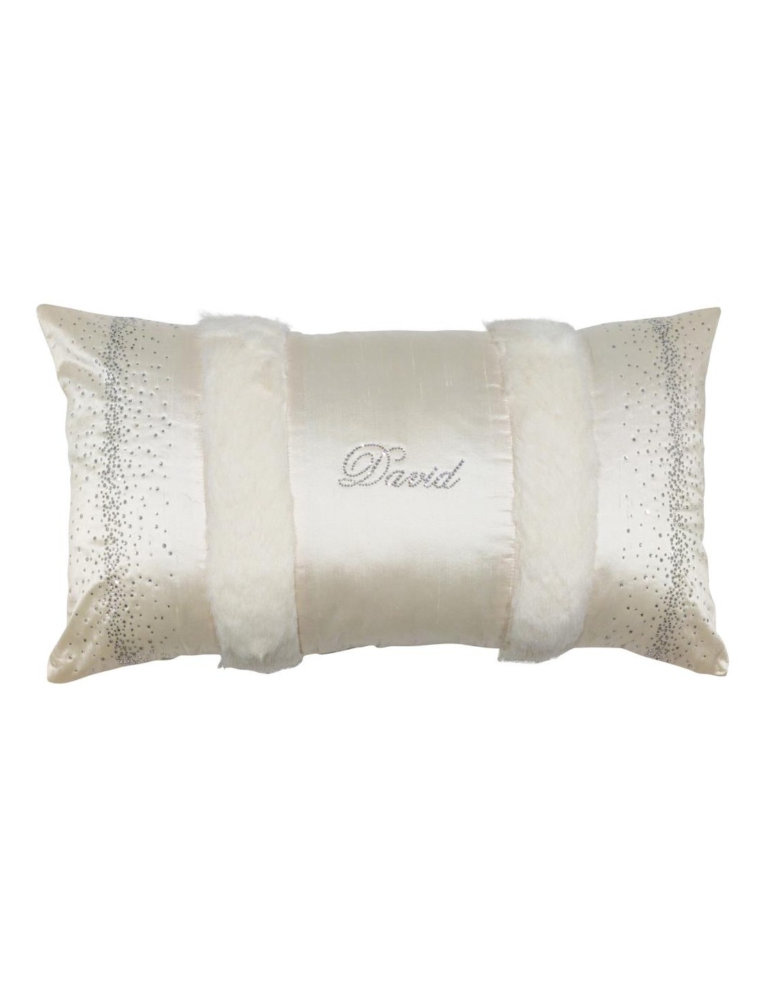 Cuscino arredo rettangolare David in tessuto pura seta rifinito con ecopelliccia e strass.