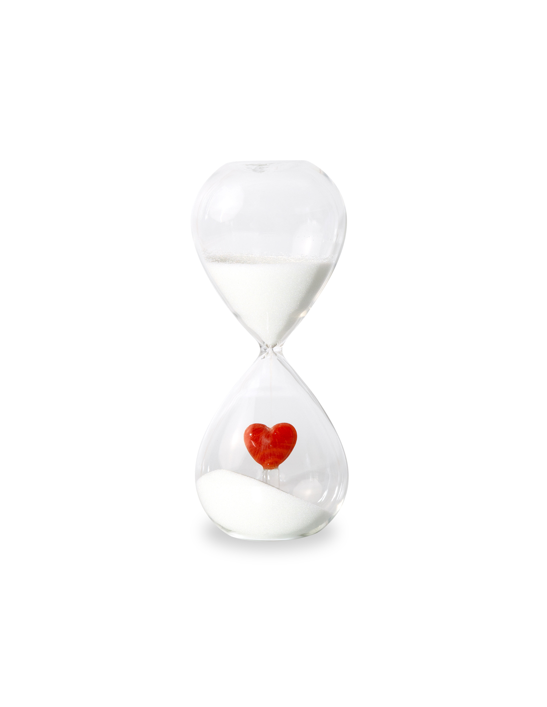 Clessidra in vetro borosilicato con sabbia colorata e soggetto in vetro colorato all’interno.