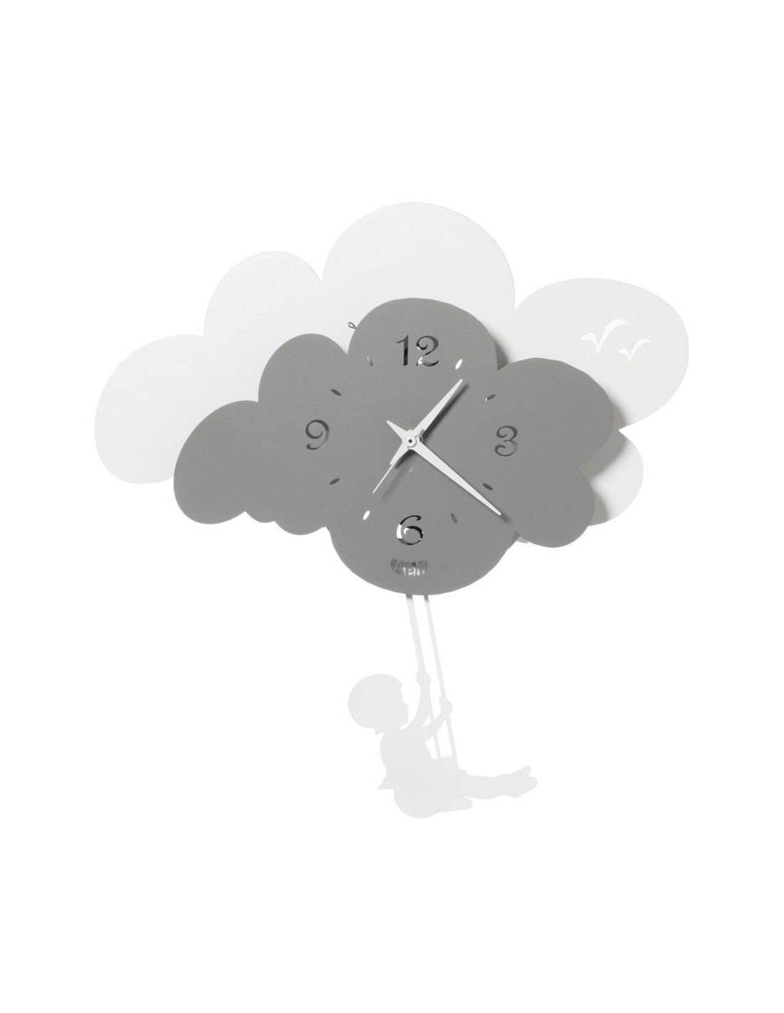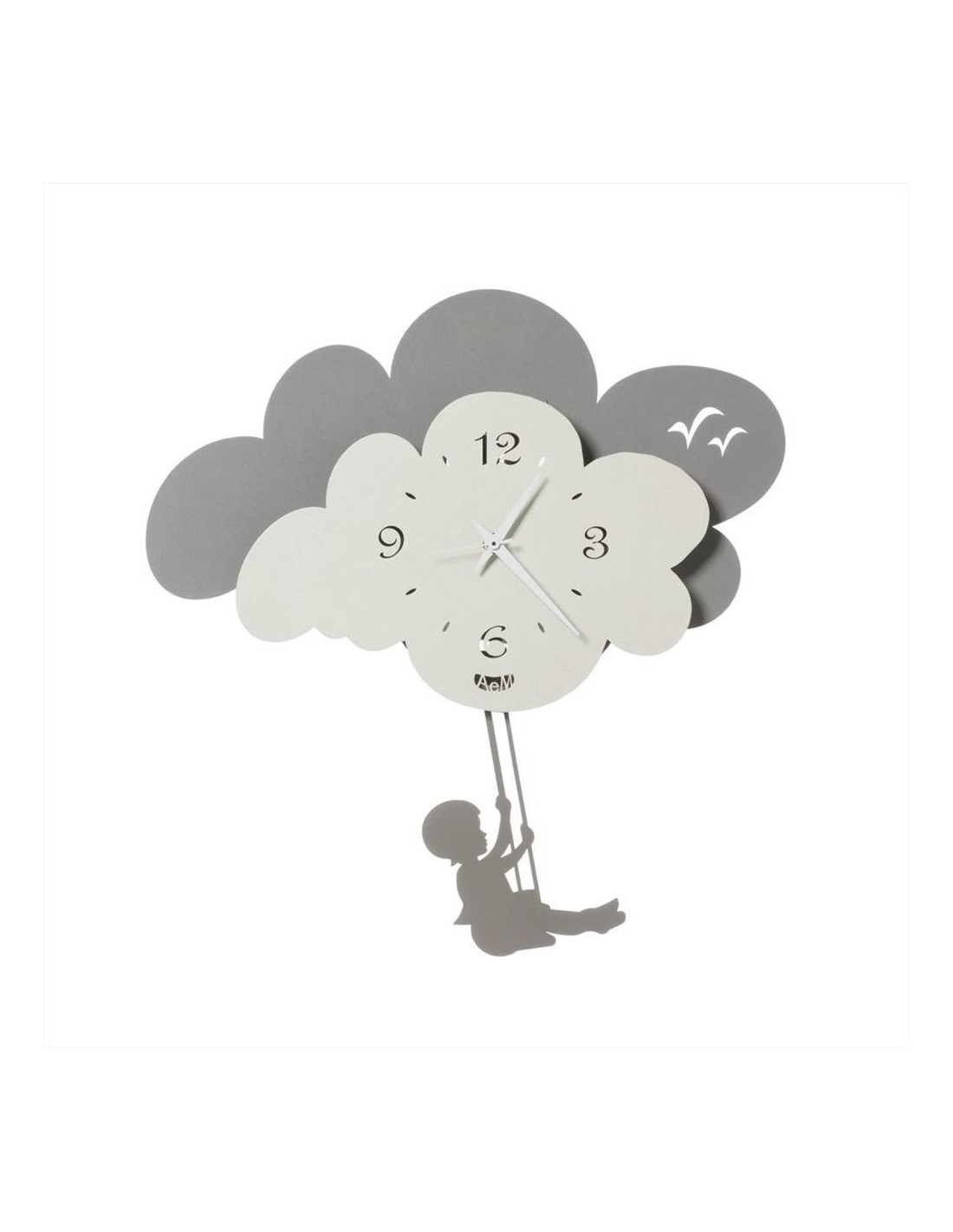 L’orologio da parete Nuvola a pendolo è composto da due nuvole sovrapposte e un’altalena appesa ad esse.