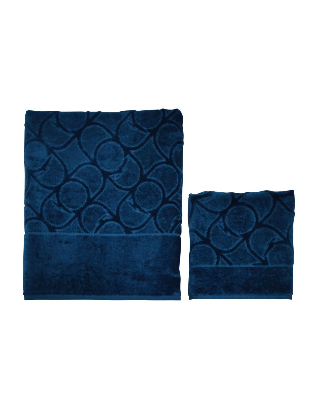 COPPIA ASCIUGAMANI VISO E OSPITE IN SPUGNA DI COTONE JACQUARD