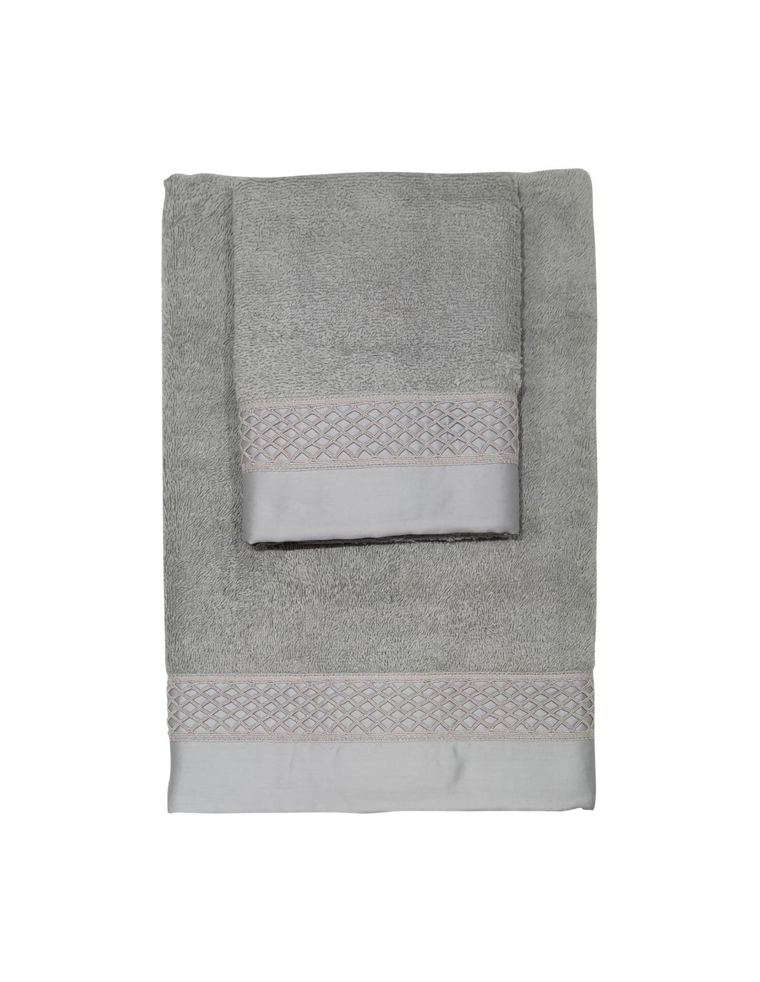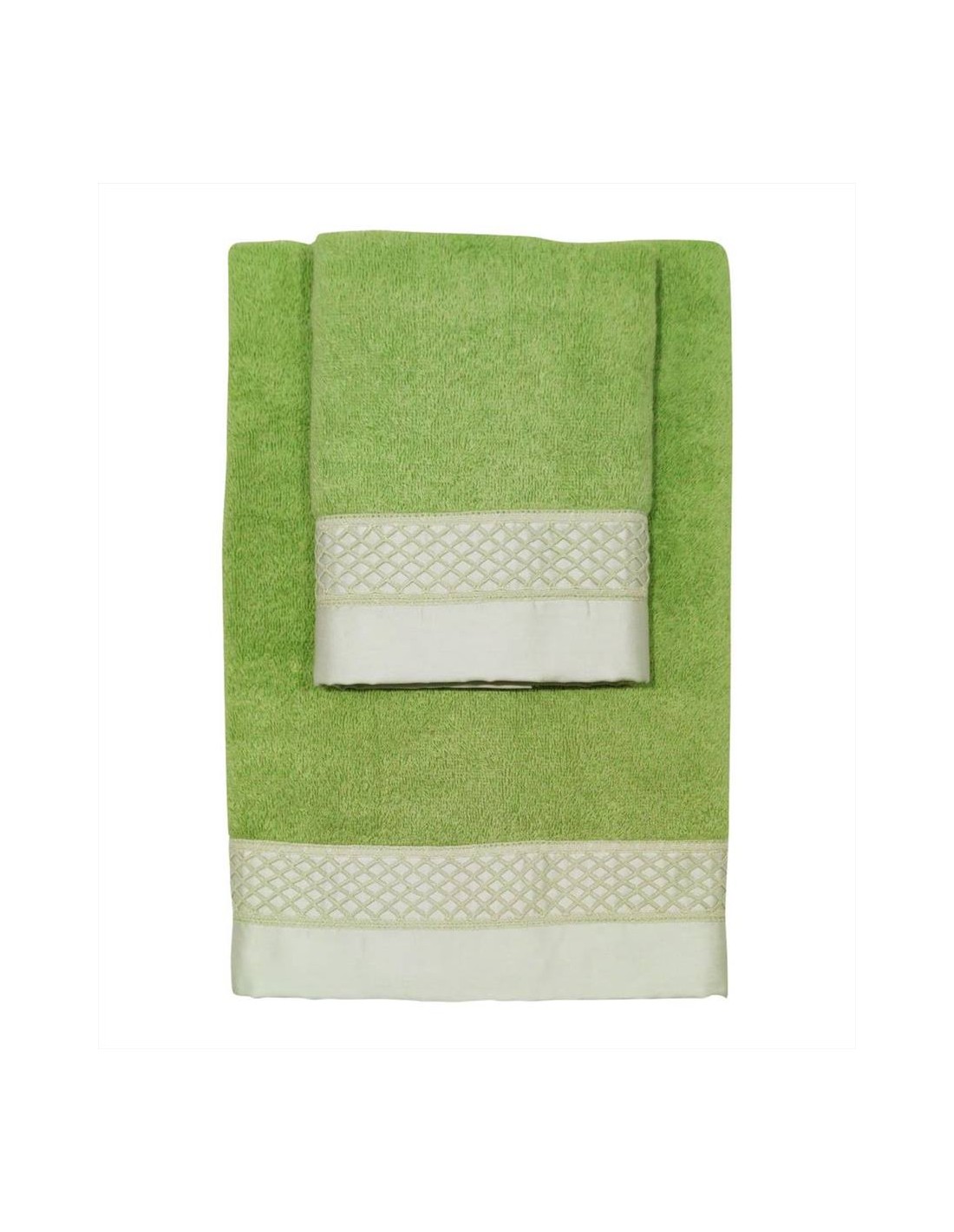 SET ASCIUGAMANI VISO E OSPITE IN SPUGNA DI COTONE CON BALZA IN RASO E PIZZO