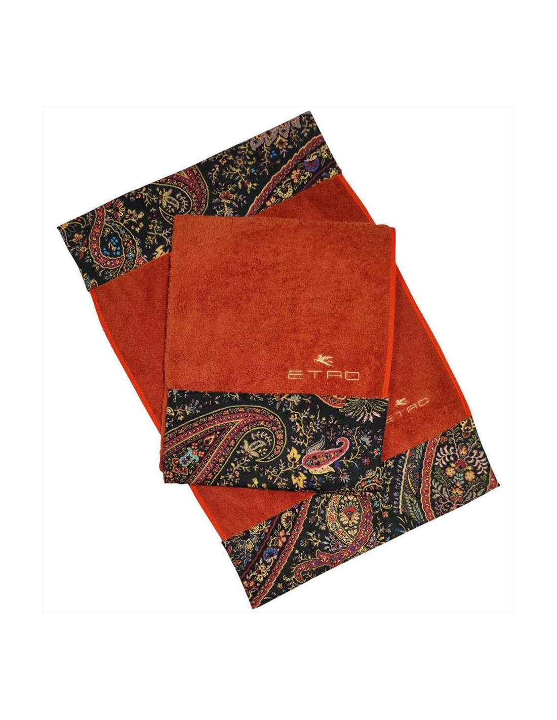 ETRO COPPIA ASCIUGAMANI VISO E OSPITE CON BORDO IN RASO DI COTONE