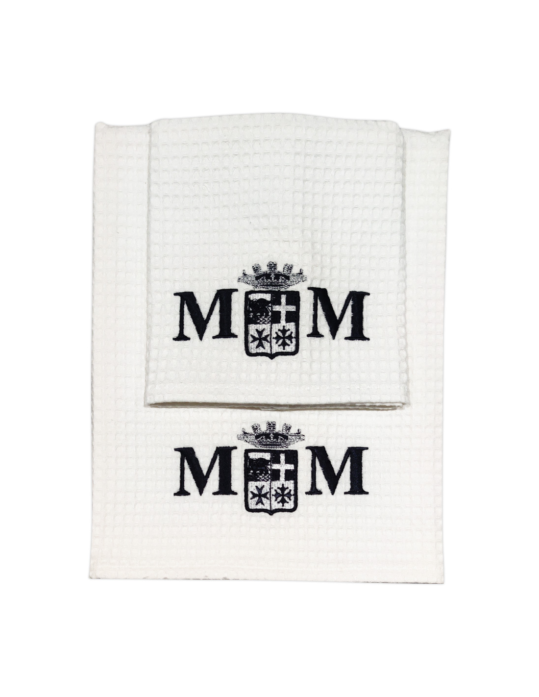 Set 2 asciugamani viso ed ospite in 100% Cotone Nido d'ape, rifiniti con logo ricamato.