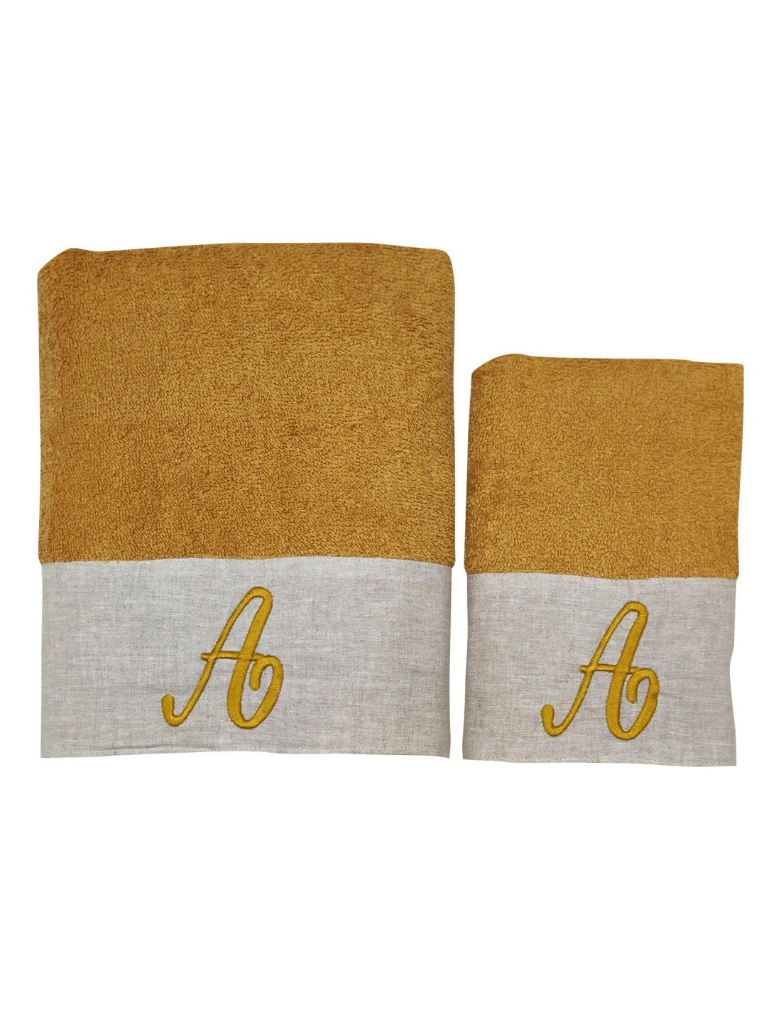 COPPIA ASCIUGAMANI VISO E OSPITE IN SPUGNA DI COTONE CON CIFRA RICAMATA
