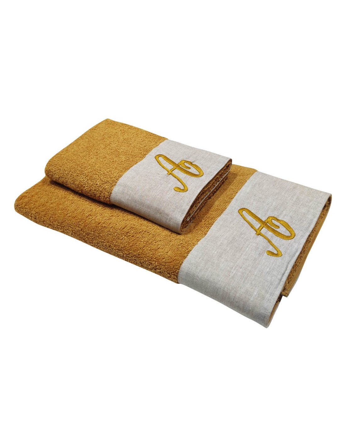 BIANCOPERLA SET 2 ASCIUGAMANI VISO E OSPITE CON INIZIALE RICAMATA - EKO LINO WASHED