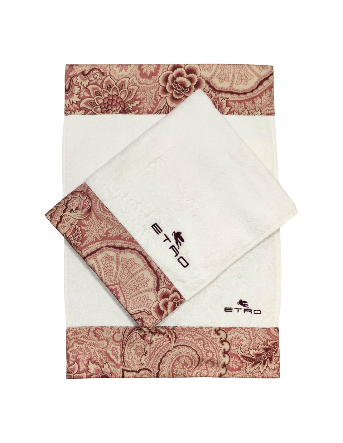 ETRO COPPIA ASCIUGAMANI VISO E OSPITE CON BORDO IN RASO DI COTONE