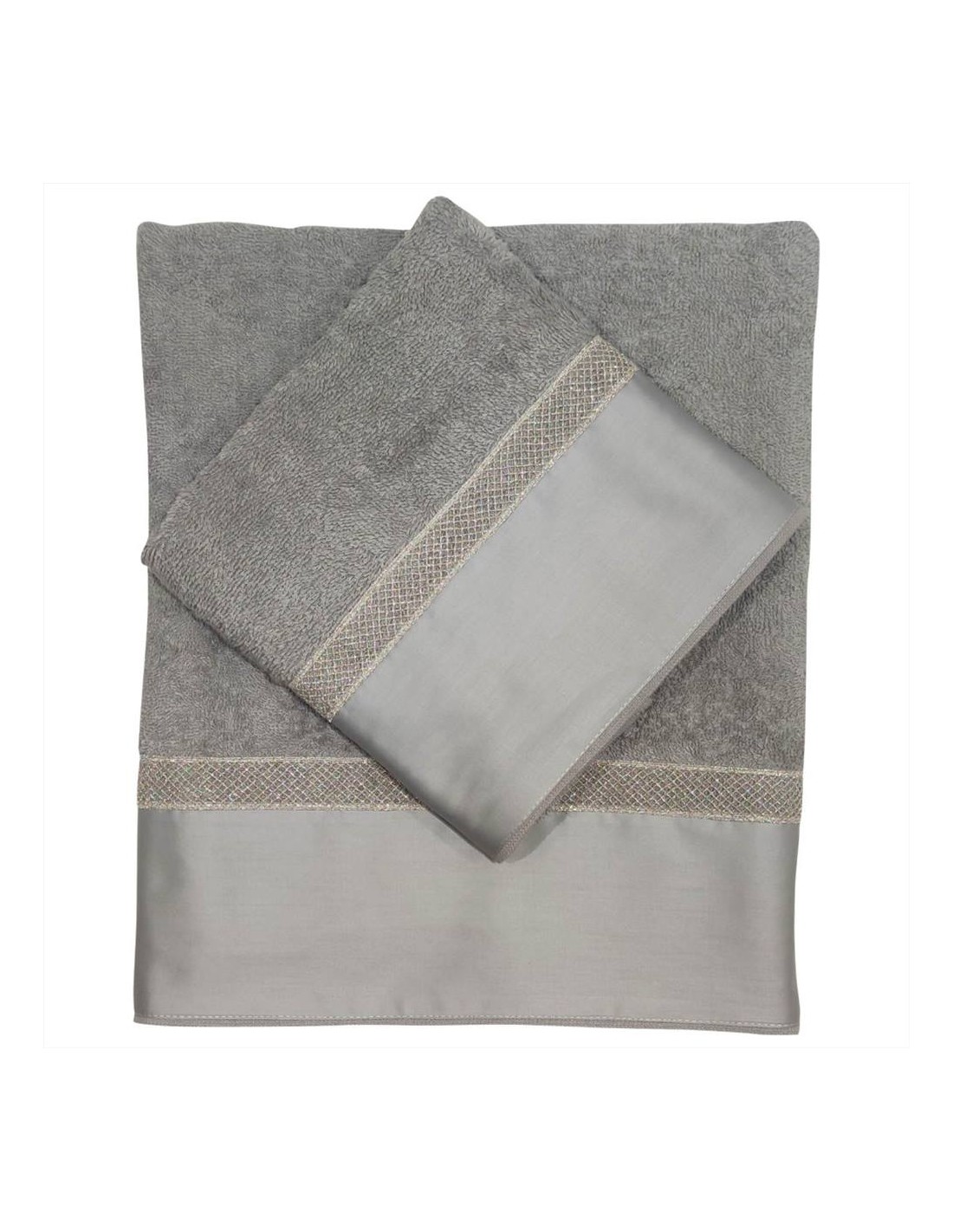 Set 2 asciugamani viso e ospite David rifinito con banda in raso e