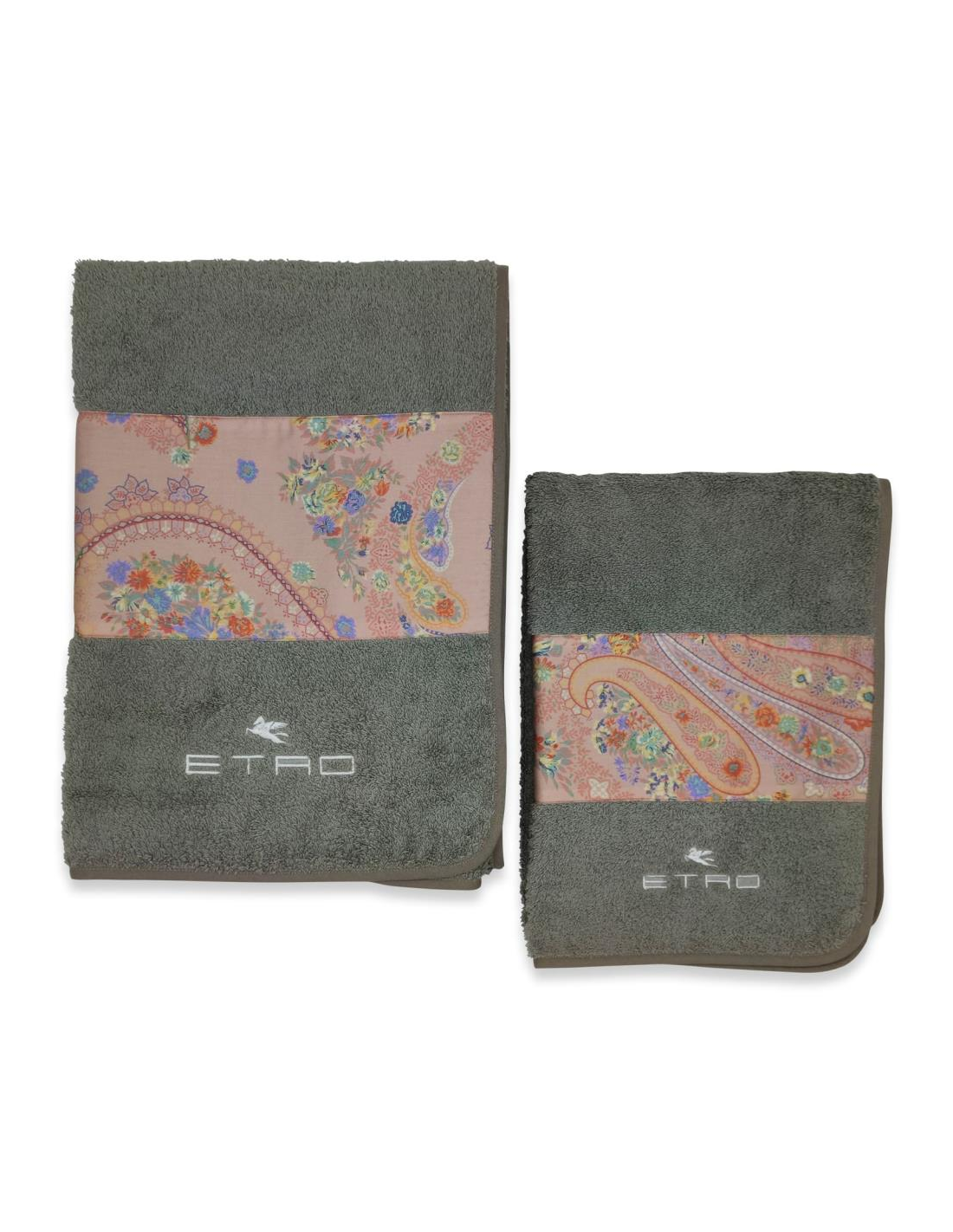 ETRO COPPIA ASCIUGAMANI VISO E OSPITE CON BANDA IN RASO DI COTONE