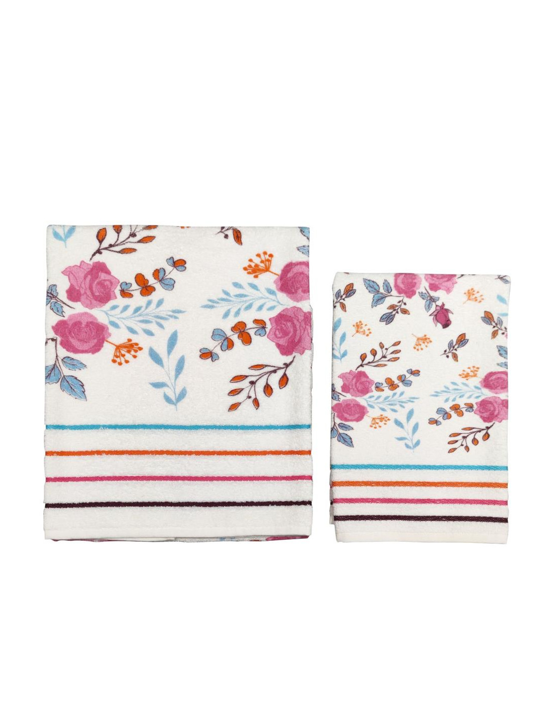 CA' D'ORO SET 2 ASCIUGAMANI IN SPUGNA DI COTONE - FLOWERS