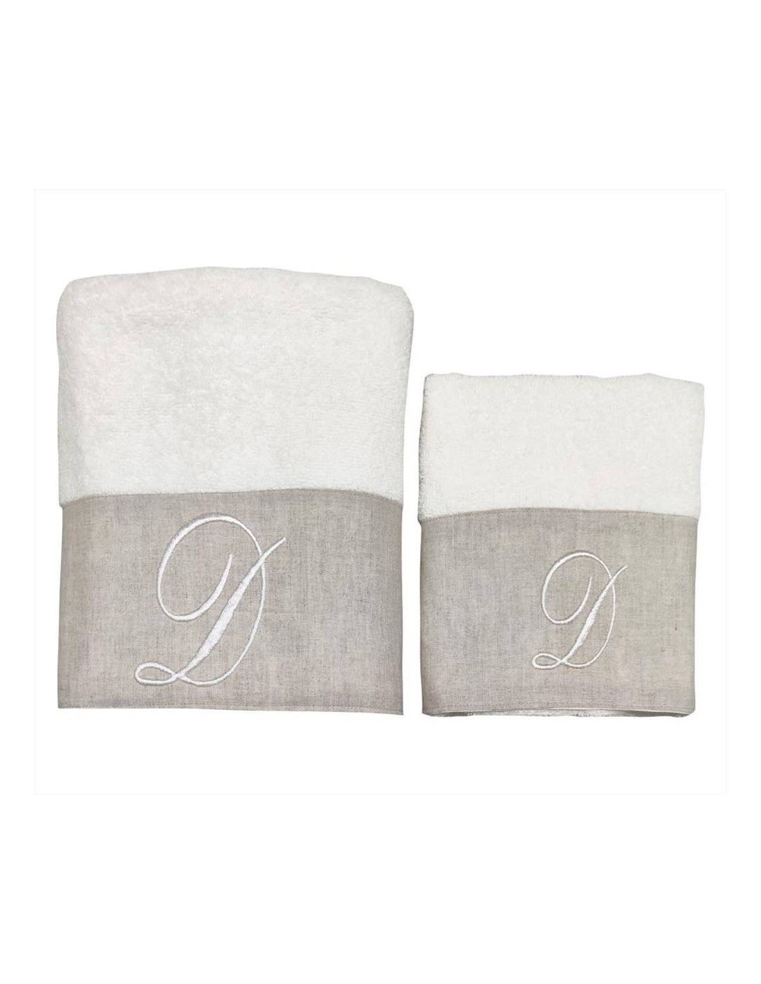 COPPIA ASCIUGAMANI VISO E OSPITE IN SPUGNA DI COTONE CON CIFRA RICAMATA