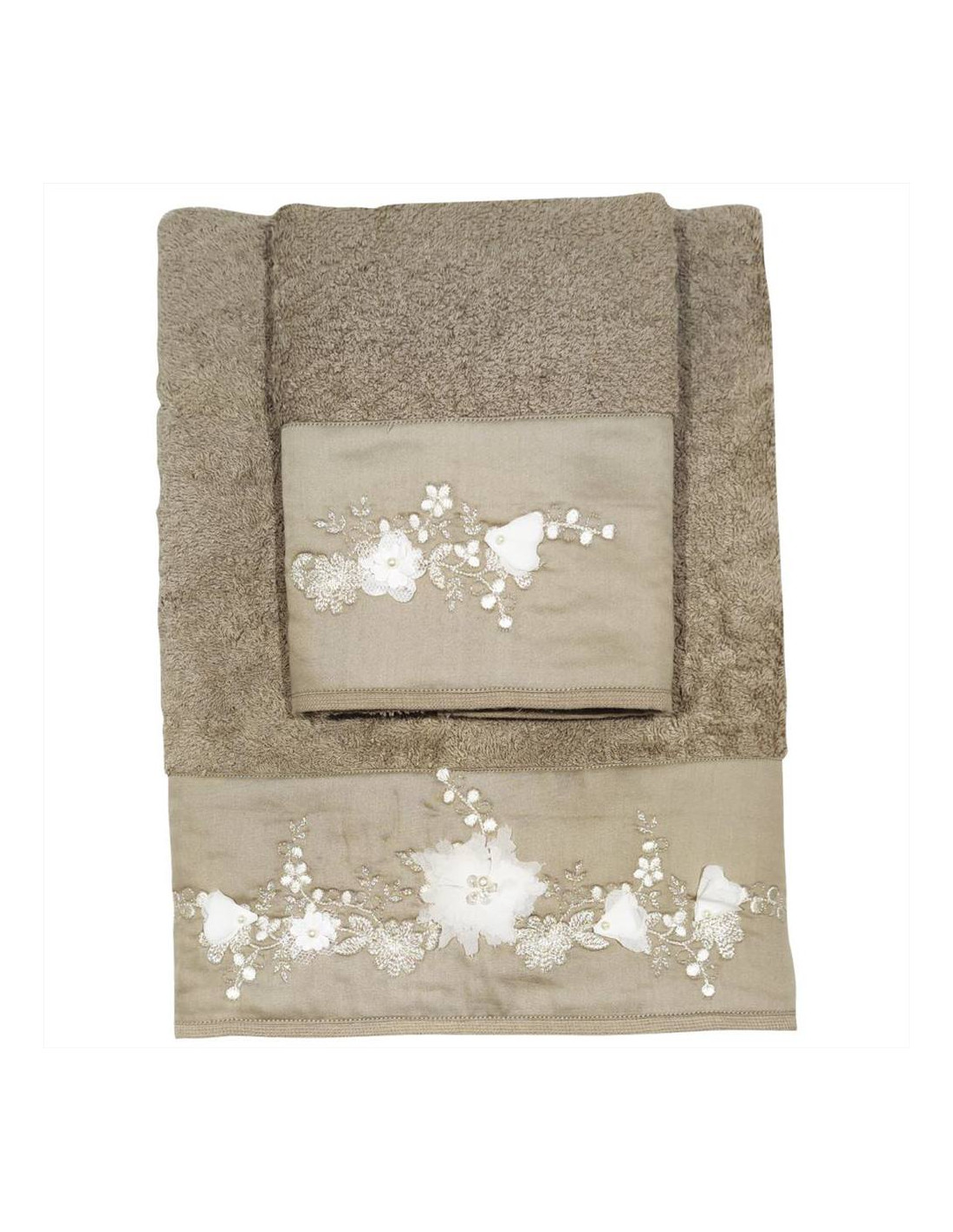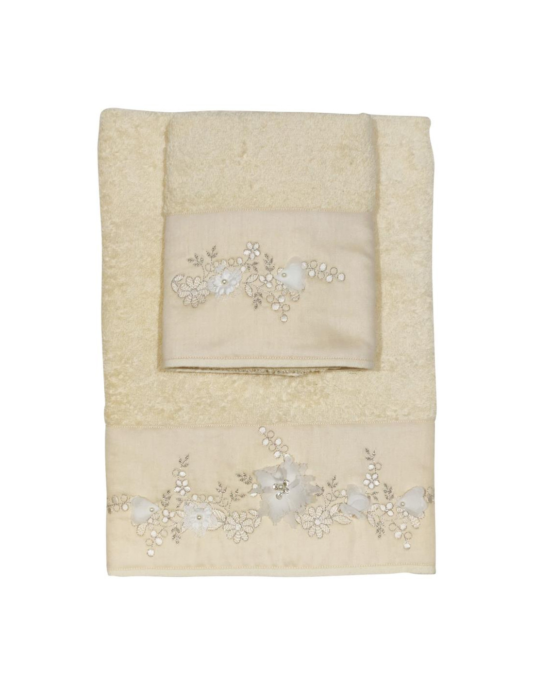 Set 2 asciugamani viso e ospite David rifinito con bordo in raso