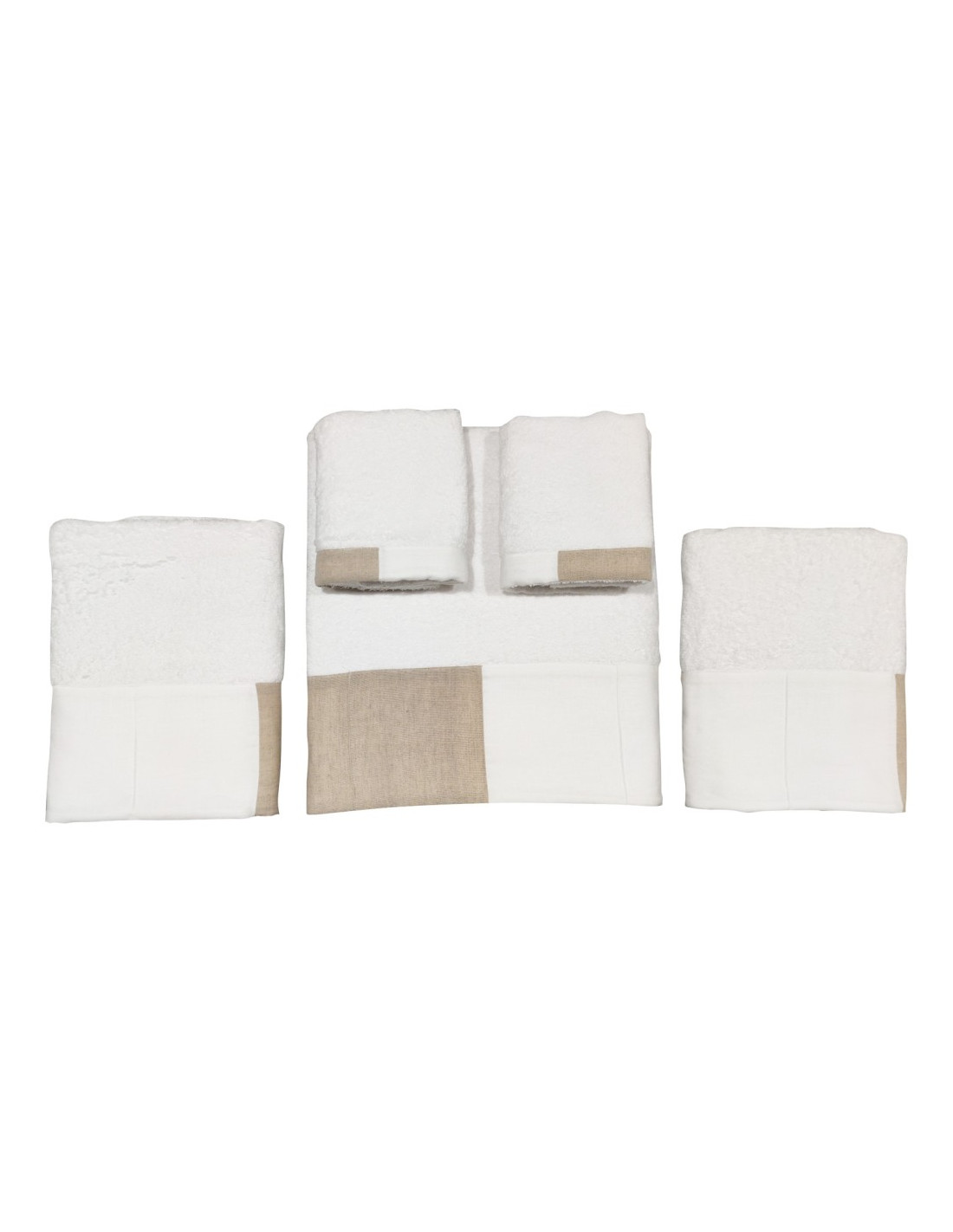 Completo da bagno 6 pezzi in spugna di puro cotone rifinito con inserti in Lino: