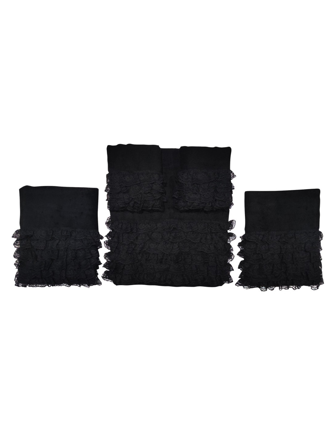Completo bagno 7 pezzi in spugna di puro cotone rifinito con pizzo.