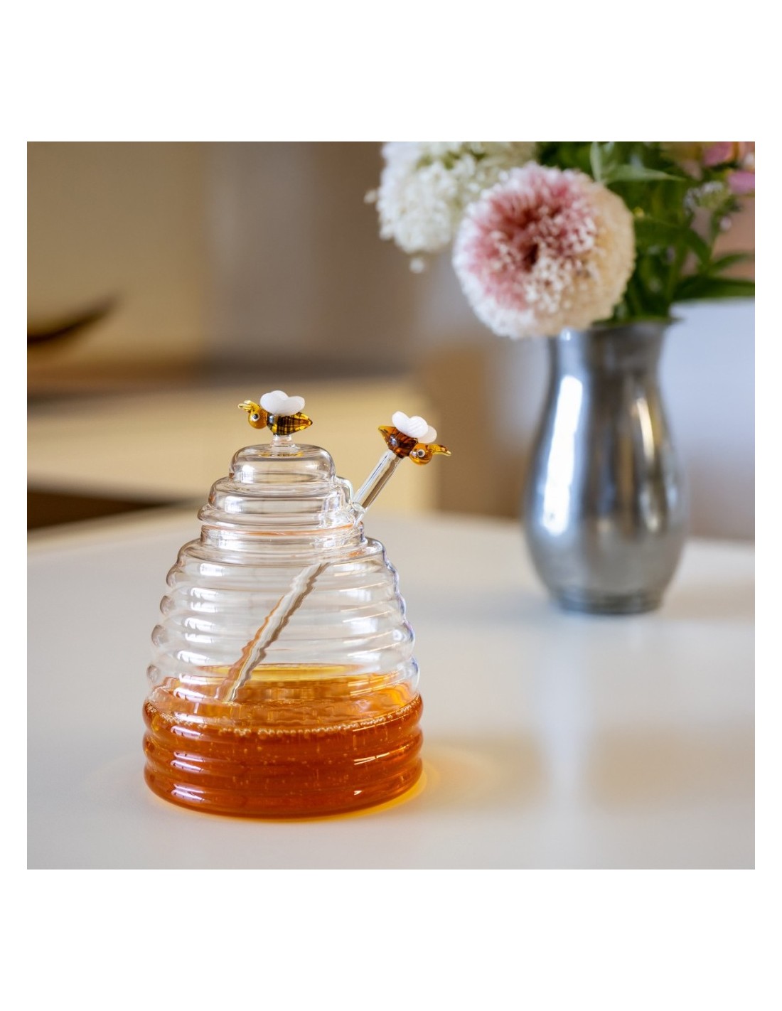 BARATTOLO PER MIELE CON BACCHETTA IN VETRO SOFFIATO