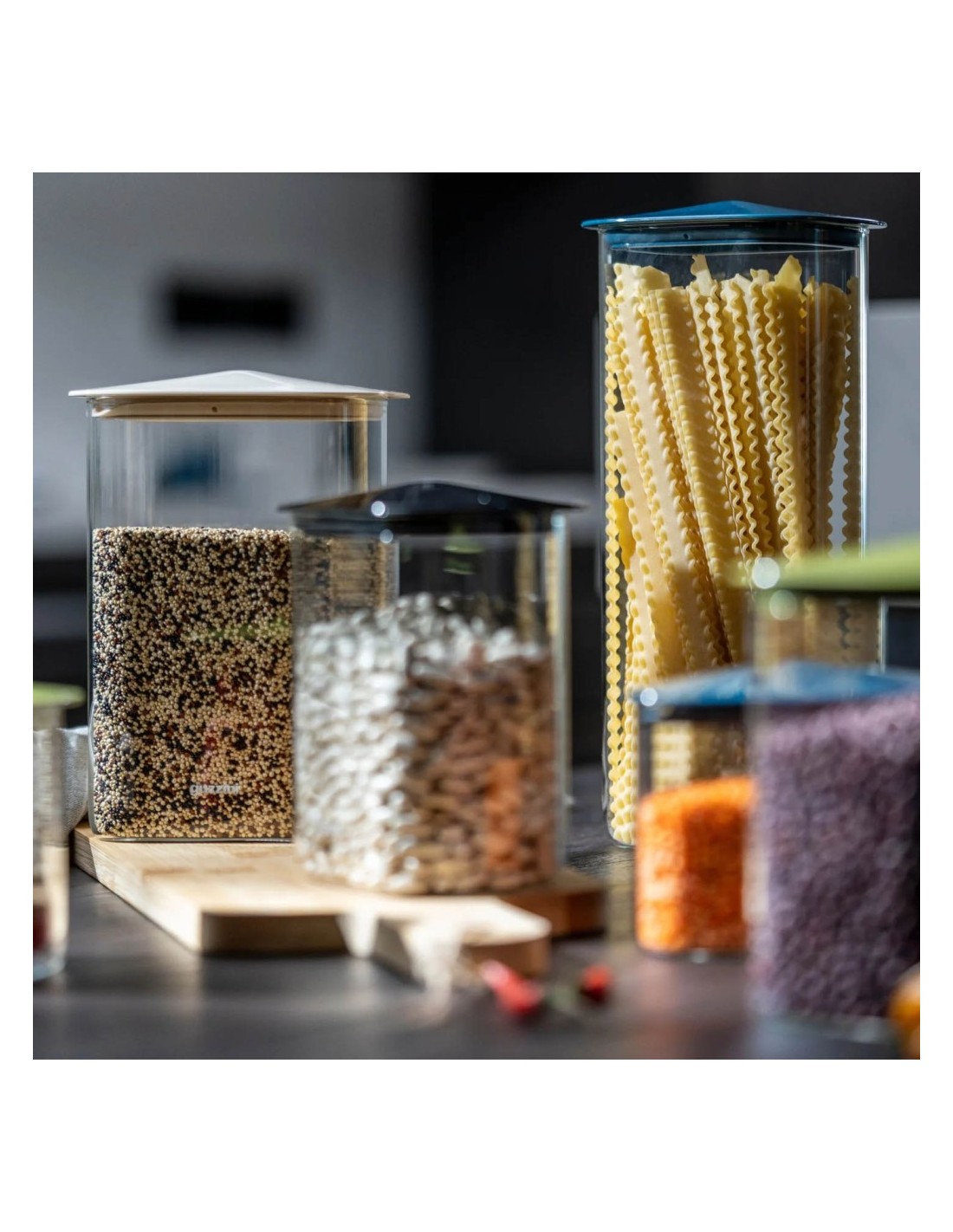 Il design semplice ma raffinato li rende ideali per conservare alimenti, spezie o piccoli oggetti, aggiungendo un tocco di eleganza a qualsiasi ambiente.
