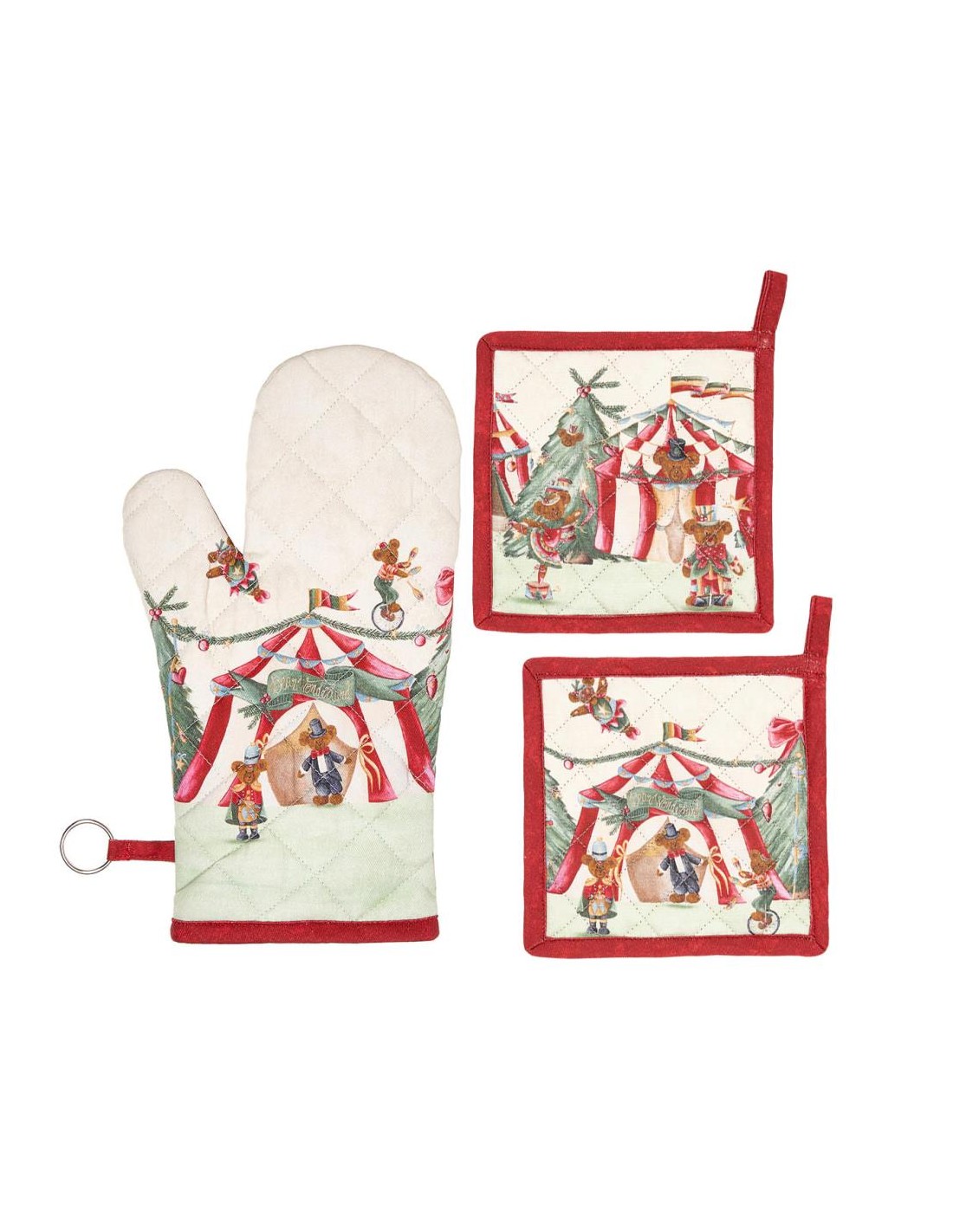Set Guanto da forno + 2 presine in cotone decoro natalizio Bear