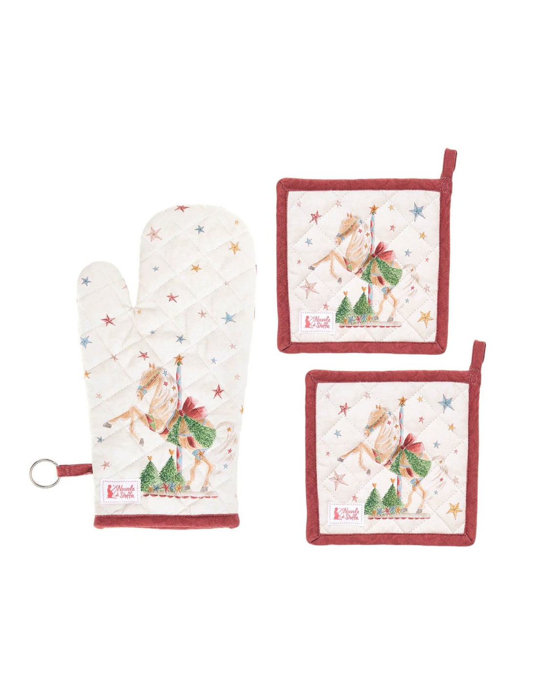 Set Guanto da forno + 2 presine in cotone decorato linea La Giostra di Amelie.