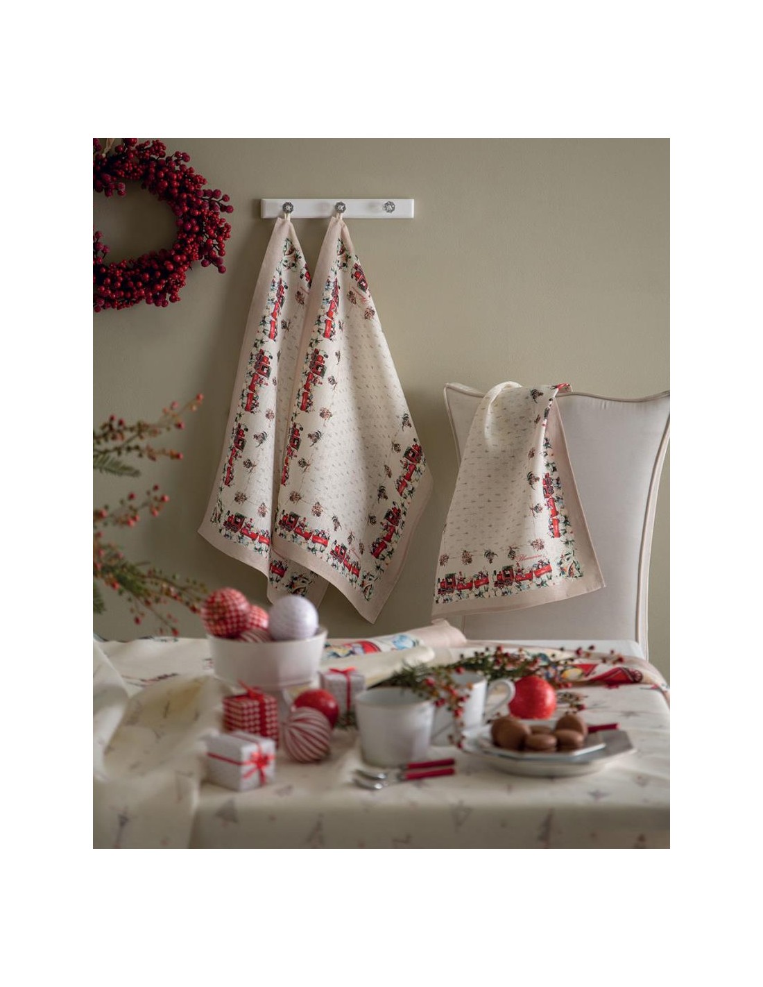 Strofinaccio in lino Blumarine linea Trenino con stampa