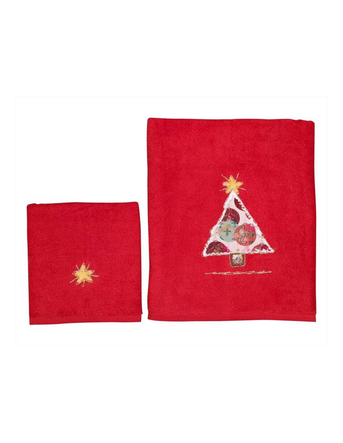 COPPIA ASIUGAMANI NATALE VISO E OSPITE IN 100% COTONE RICAMATI
