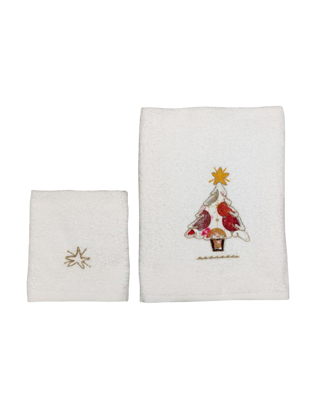 ALESSANDRO BARONCELLI SET 2 ASCIUGAMANI IN SPUGNA CON RICAMO NATALIZIO