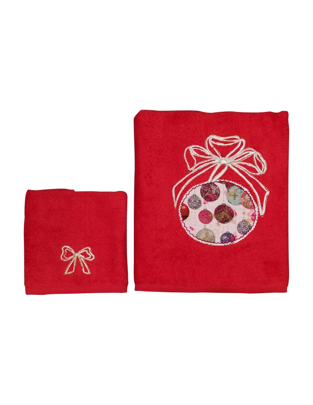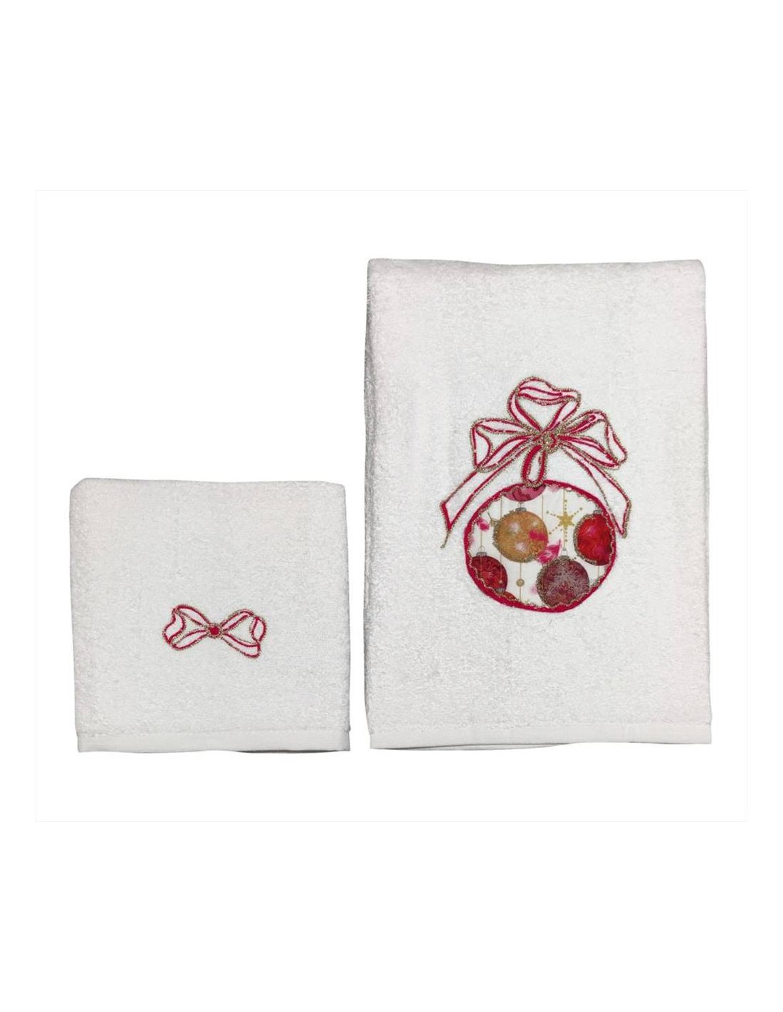COPPIA ASIUGAMANI NATALE VISO E OSPITE IN 100% COTONE RICAMATI