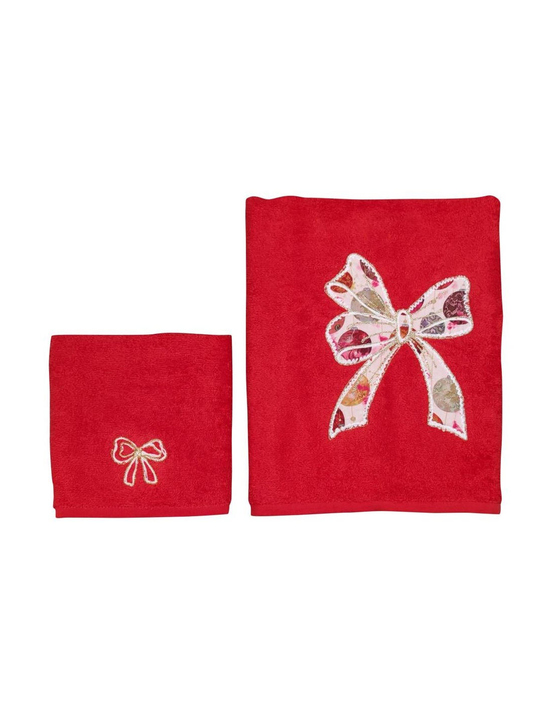 ALESSANDRO BARONCELLI SET 2 ASCIUGAMANI IN SPUGNA CON RICAMO NATALIZIO