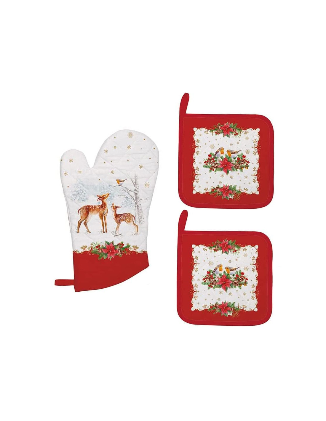 SET GUANTO E PRESINE DA CUCINA IN COTONE FANTASIA NATALIZIA