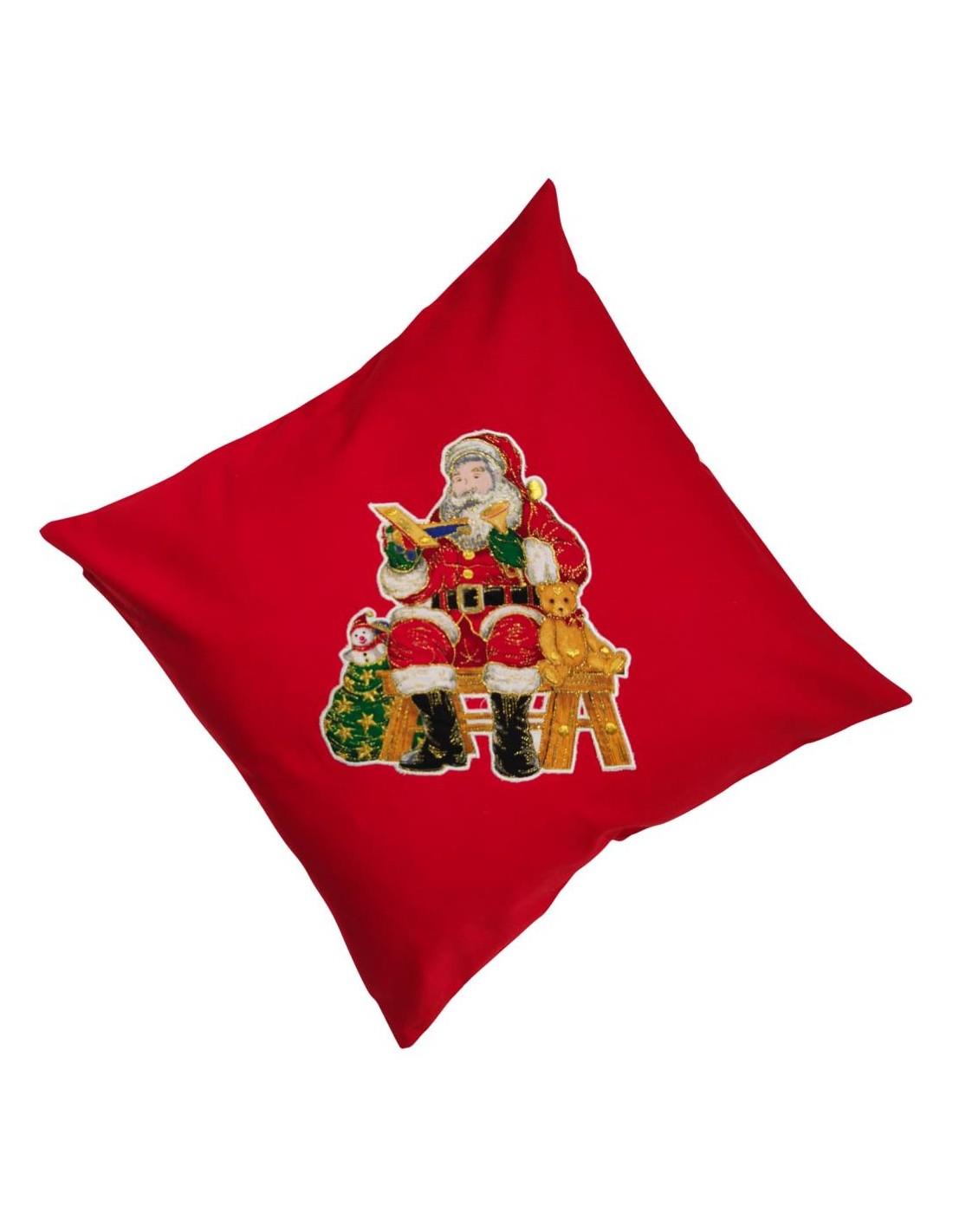 CUSCINO DA DIVANO IN PANAMA DI COTONE CON BABBO NATALE RICAMATO