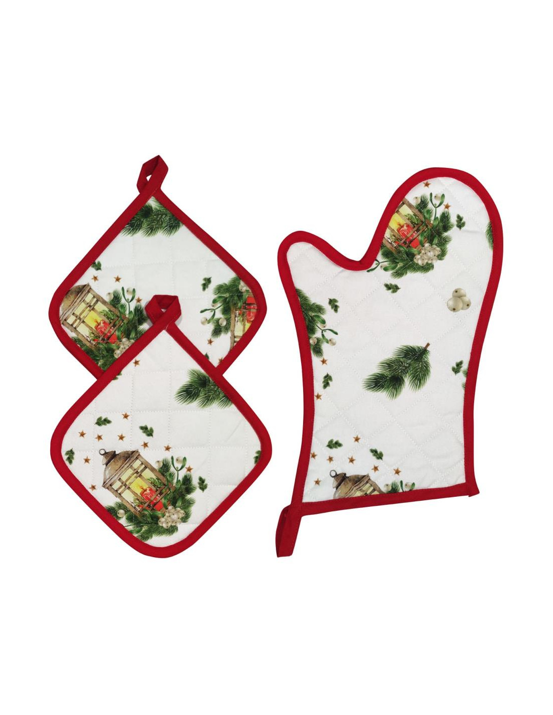 ANNAMARIA SET 2 PRESINE + 1 GUANTO DA CUCINA - LANTERNA NATALE