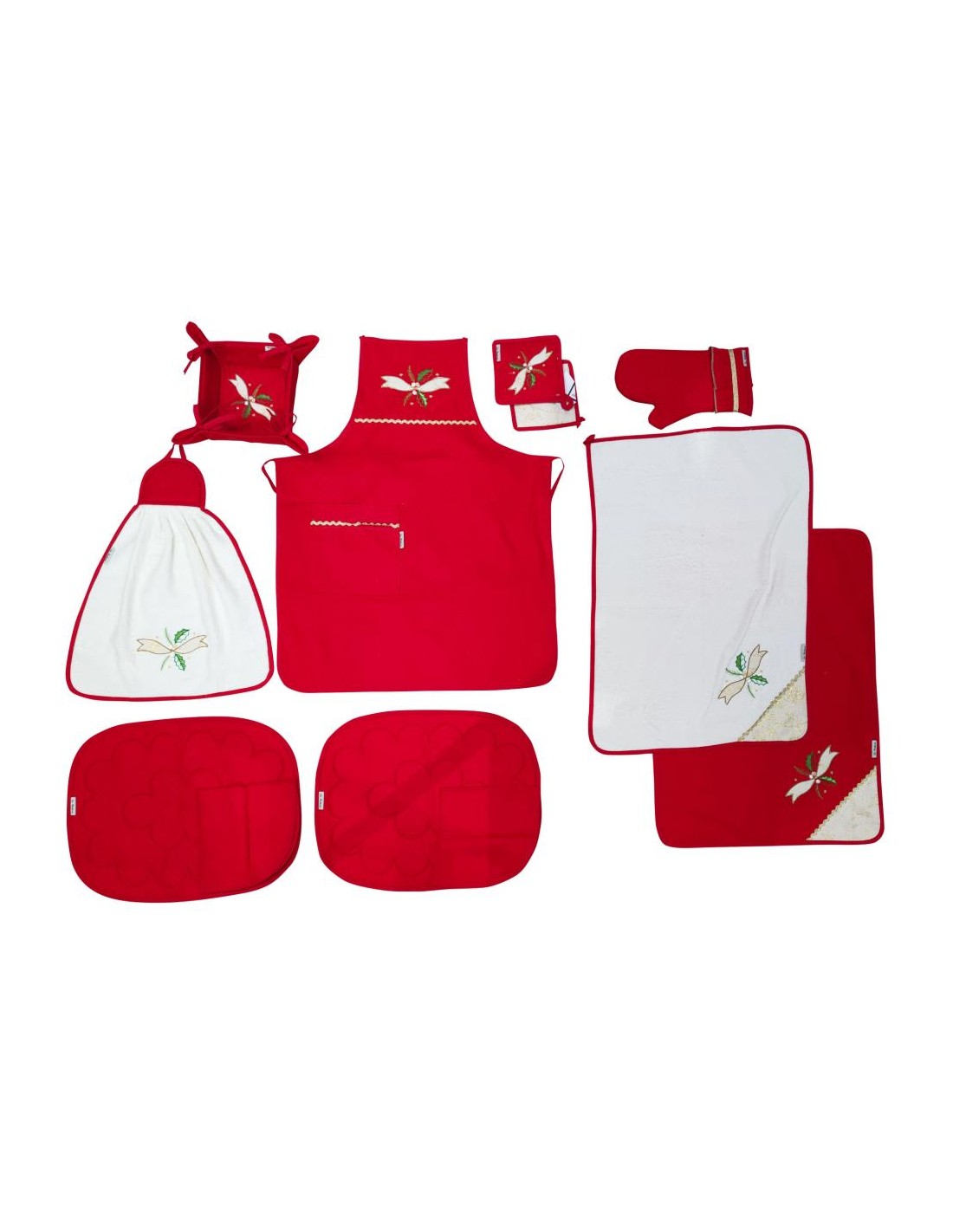 SET CUCINA 10 PEZZI CON RICAMO NATALIZIO