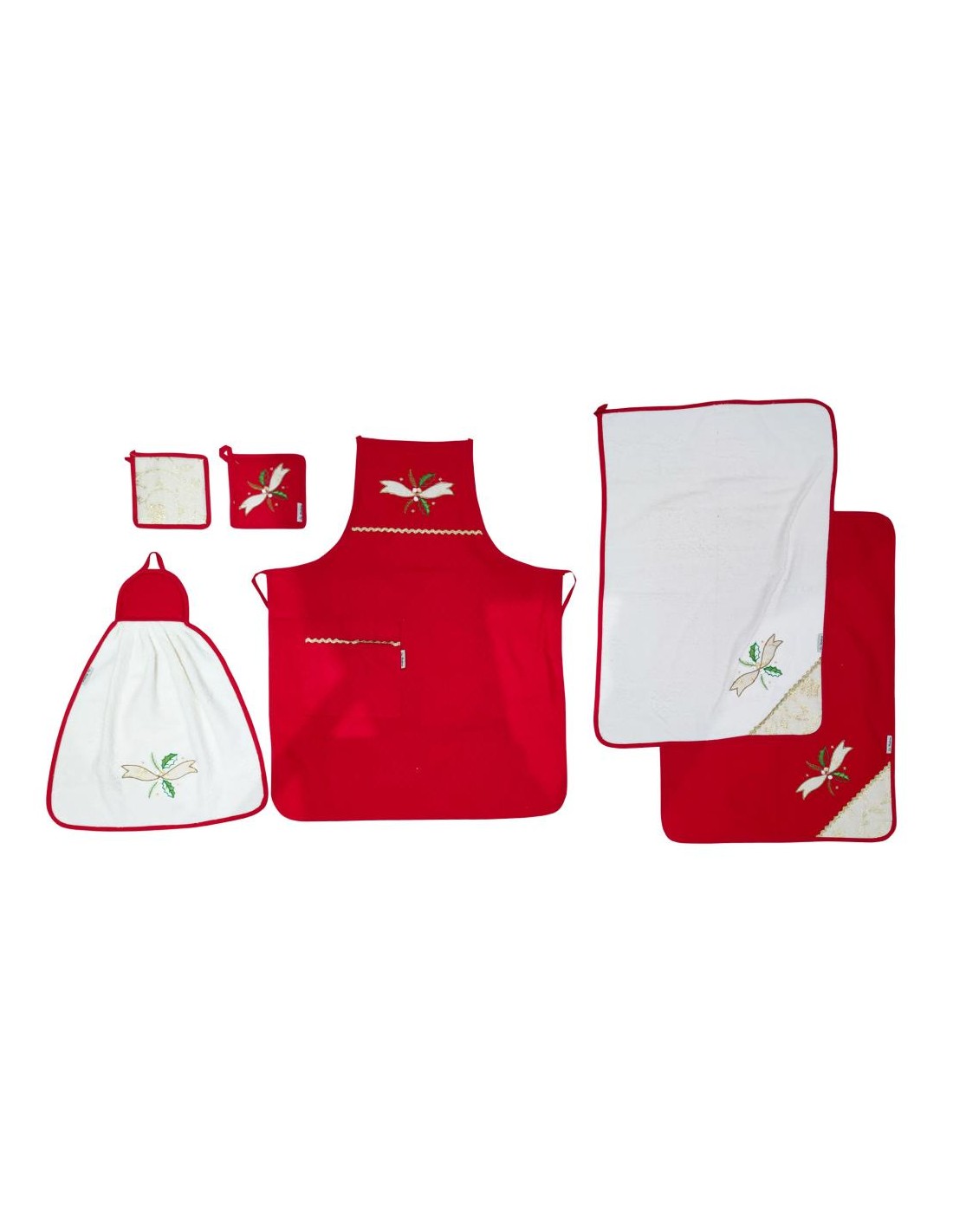 SET CUCINA 6 PEZZI CON RICAMO NATALIZIO