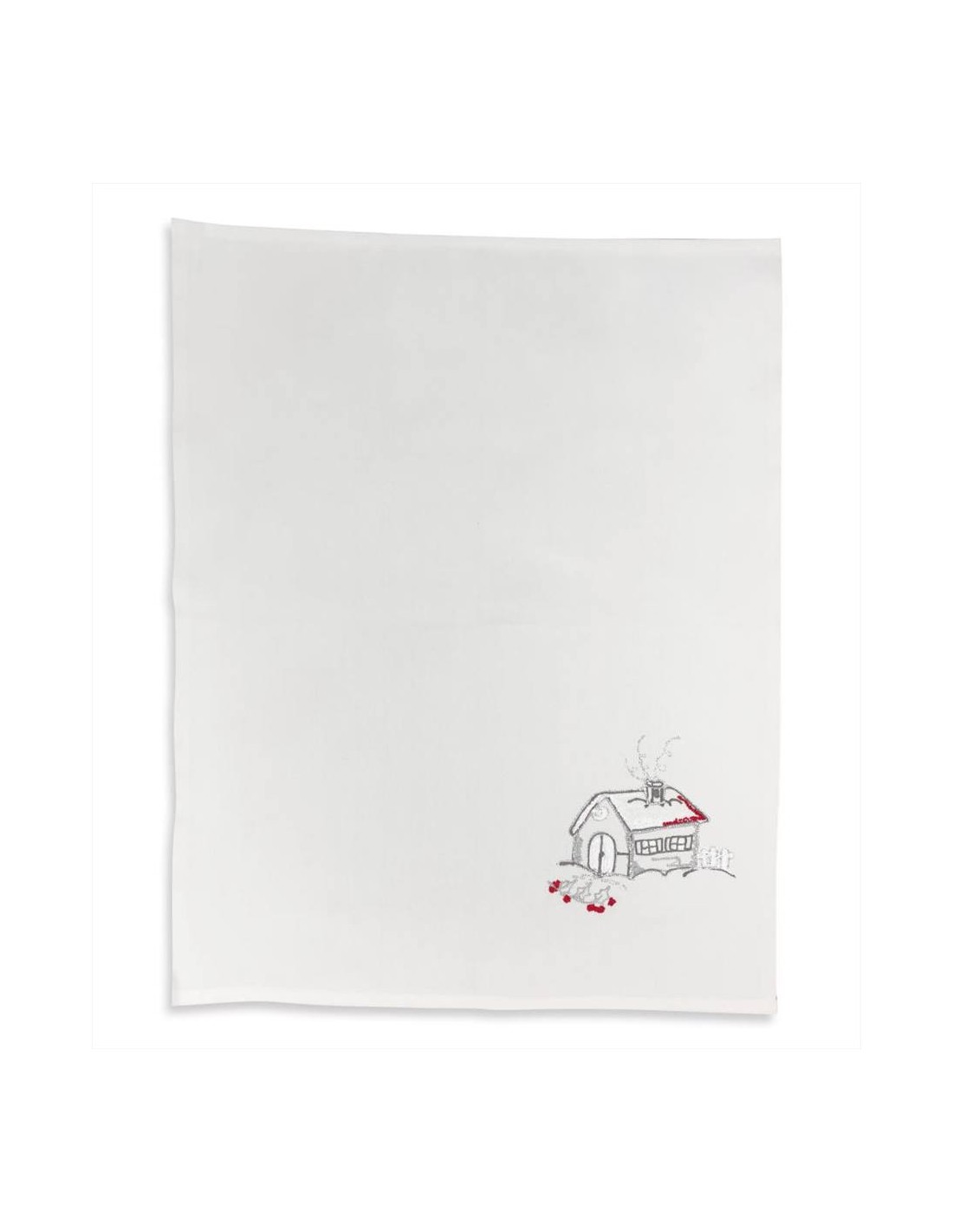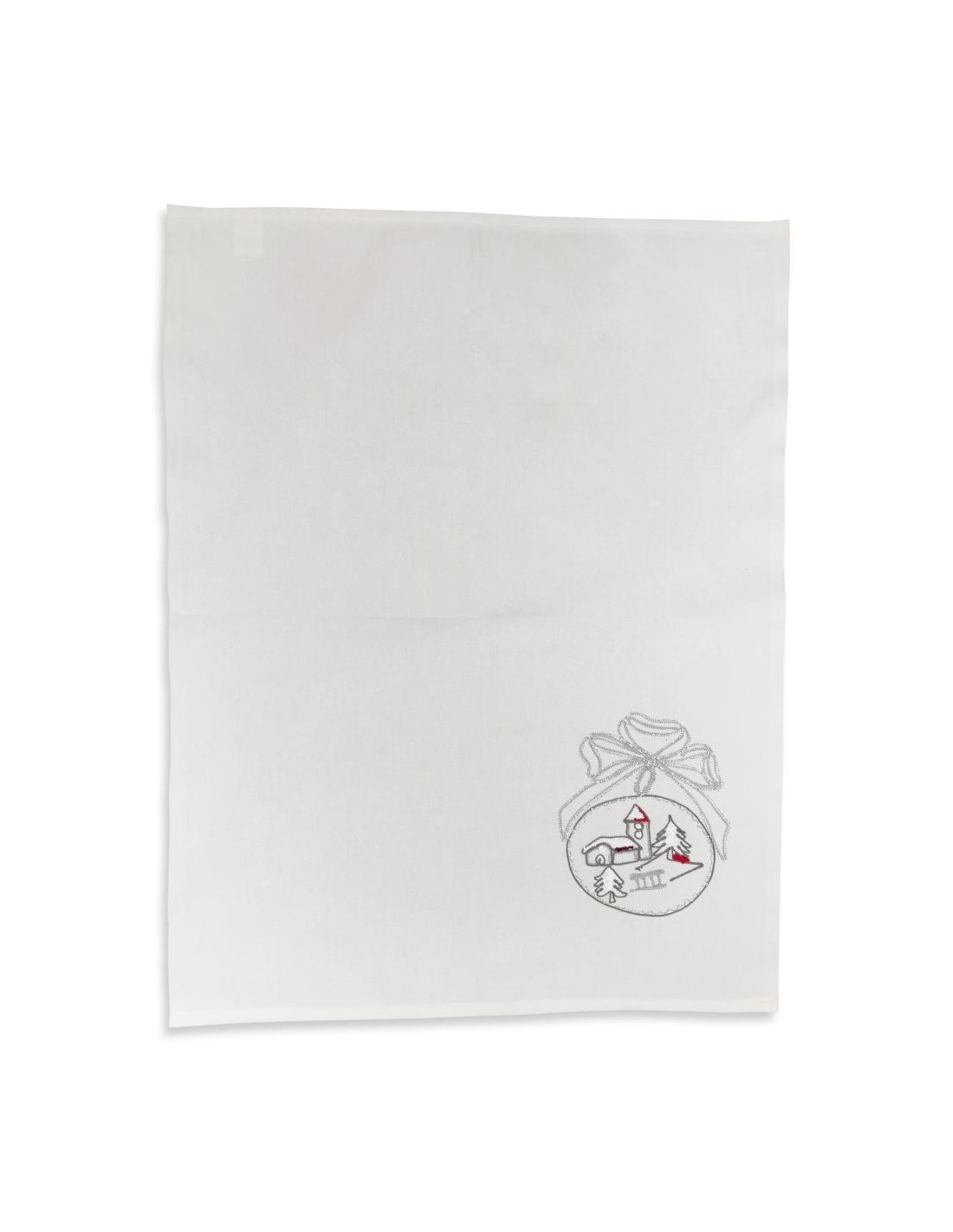 Strofinaccio in puro cotone spigato rifinito con ricamo natalizio punto catenella.