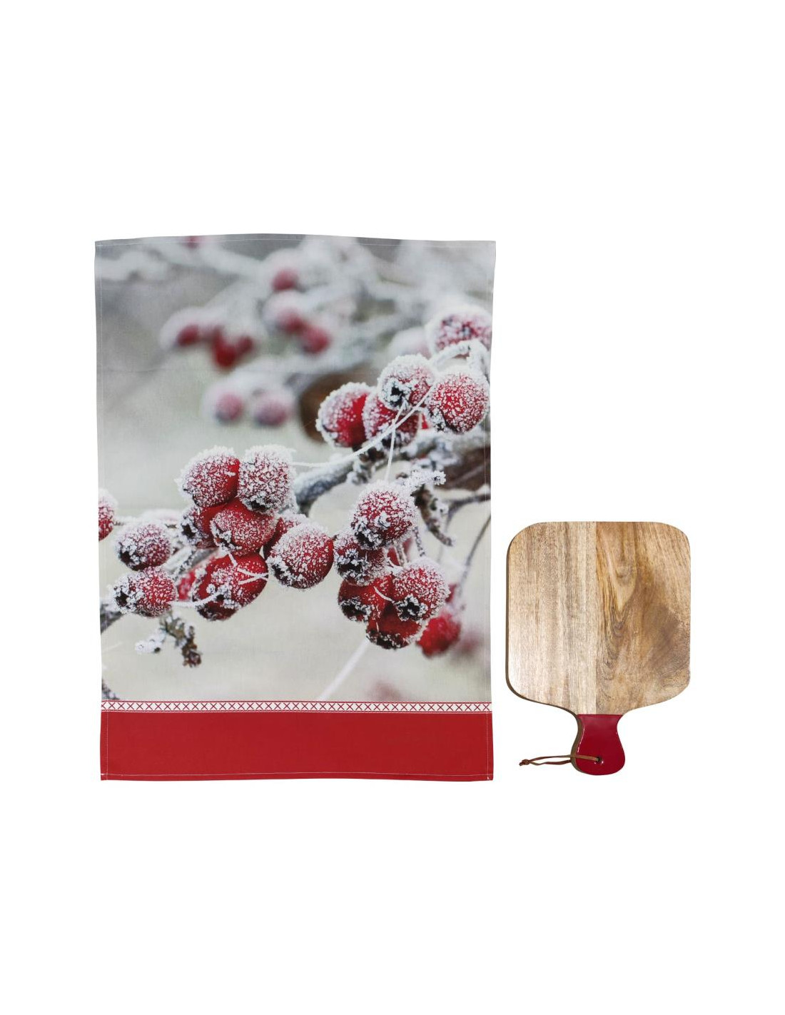 Set 2 pezzi tagliere in legno e strofinaccio in preziosa stampa