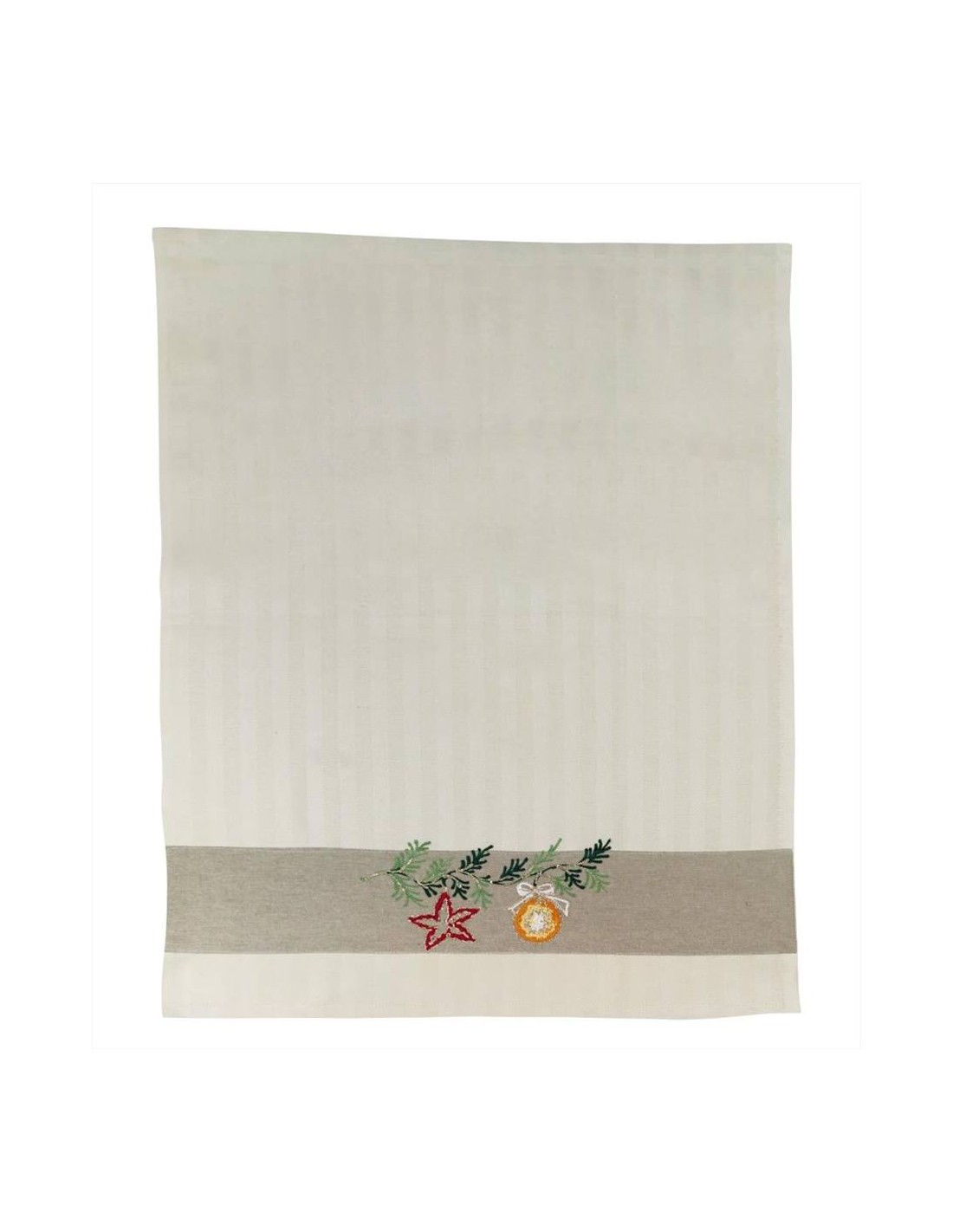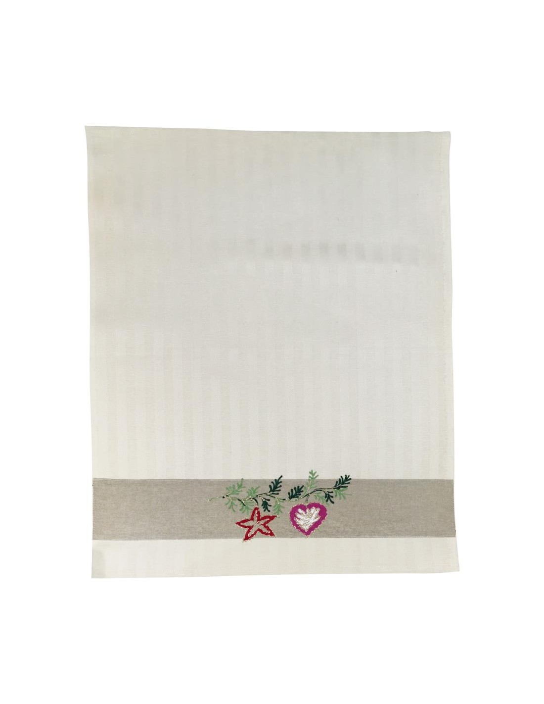 Strofinaccio in misto Lino con rifinito con ricamo natalizio in punto