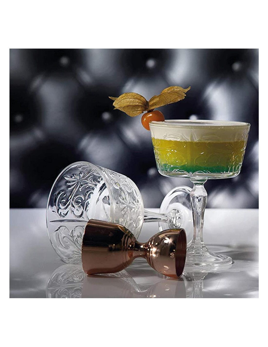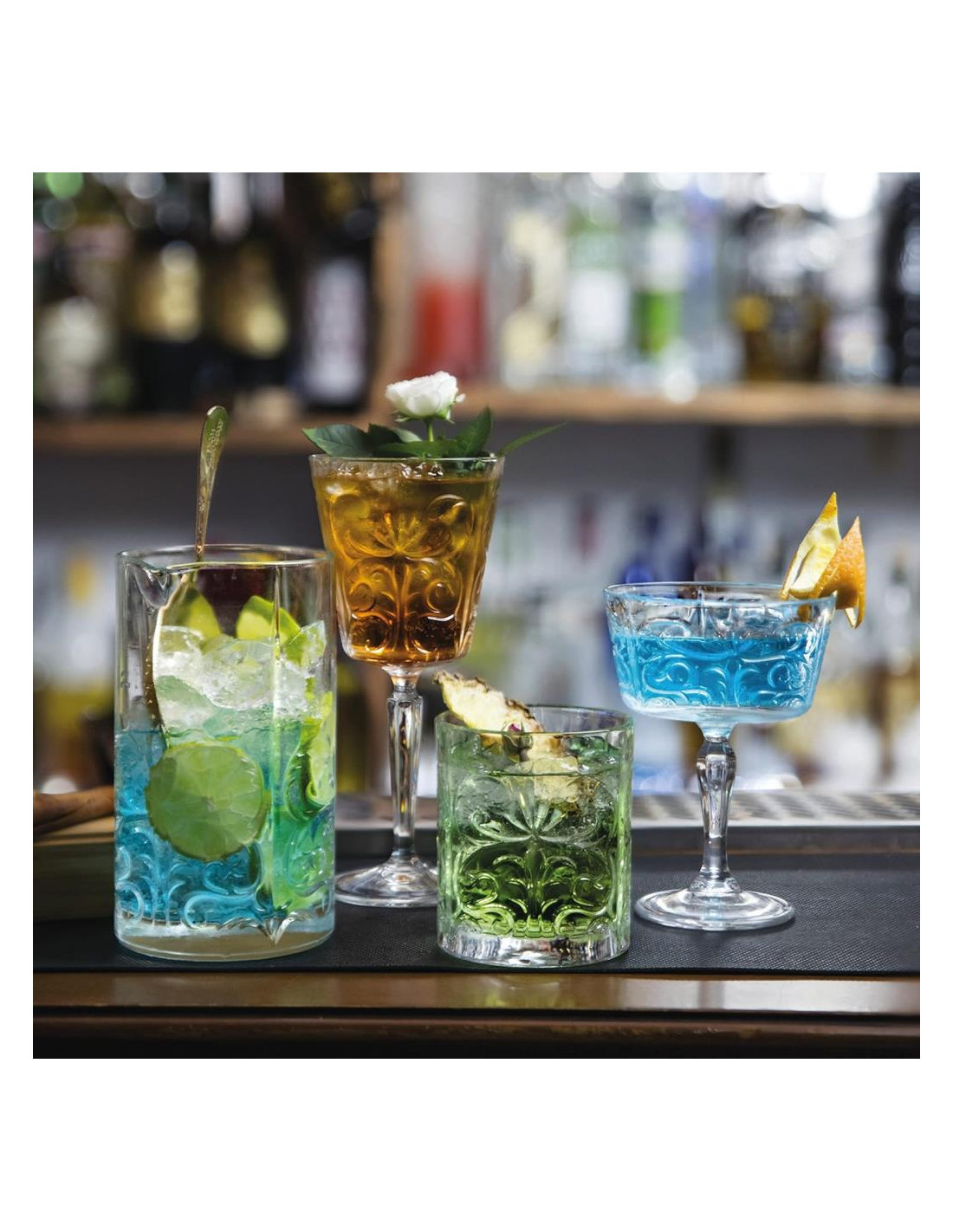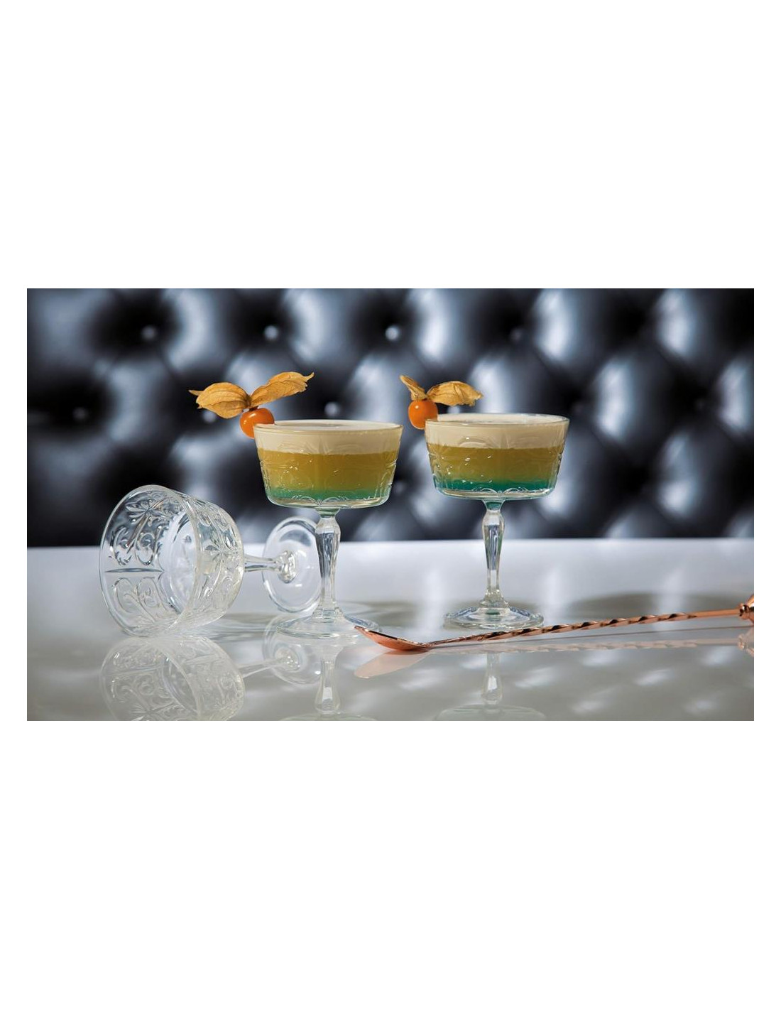 I bicchieri sono realizzati in vetro trasparente e hanno una forma sottile e slanciata, che permette di esaltare la presentazione dei cocktail e la percezione dei colori e delle sfumature.