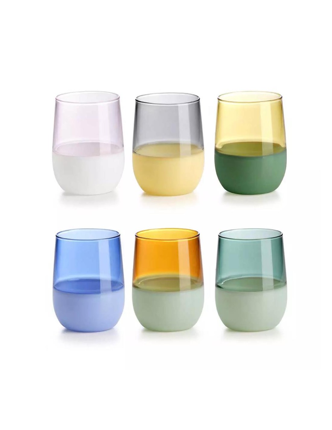 Set 6 bicchieri acqua in vetro borosilicato bicolore con effetto latte