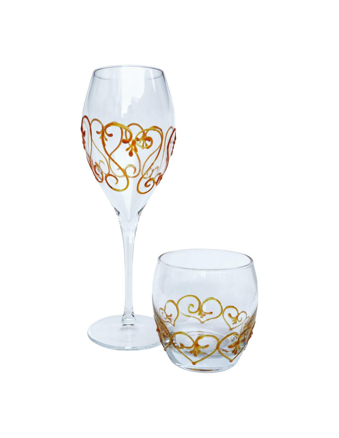 Set 12 pezzi in vetro decorato a mano artigianalmente a