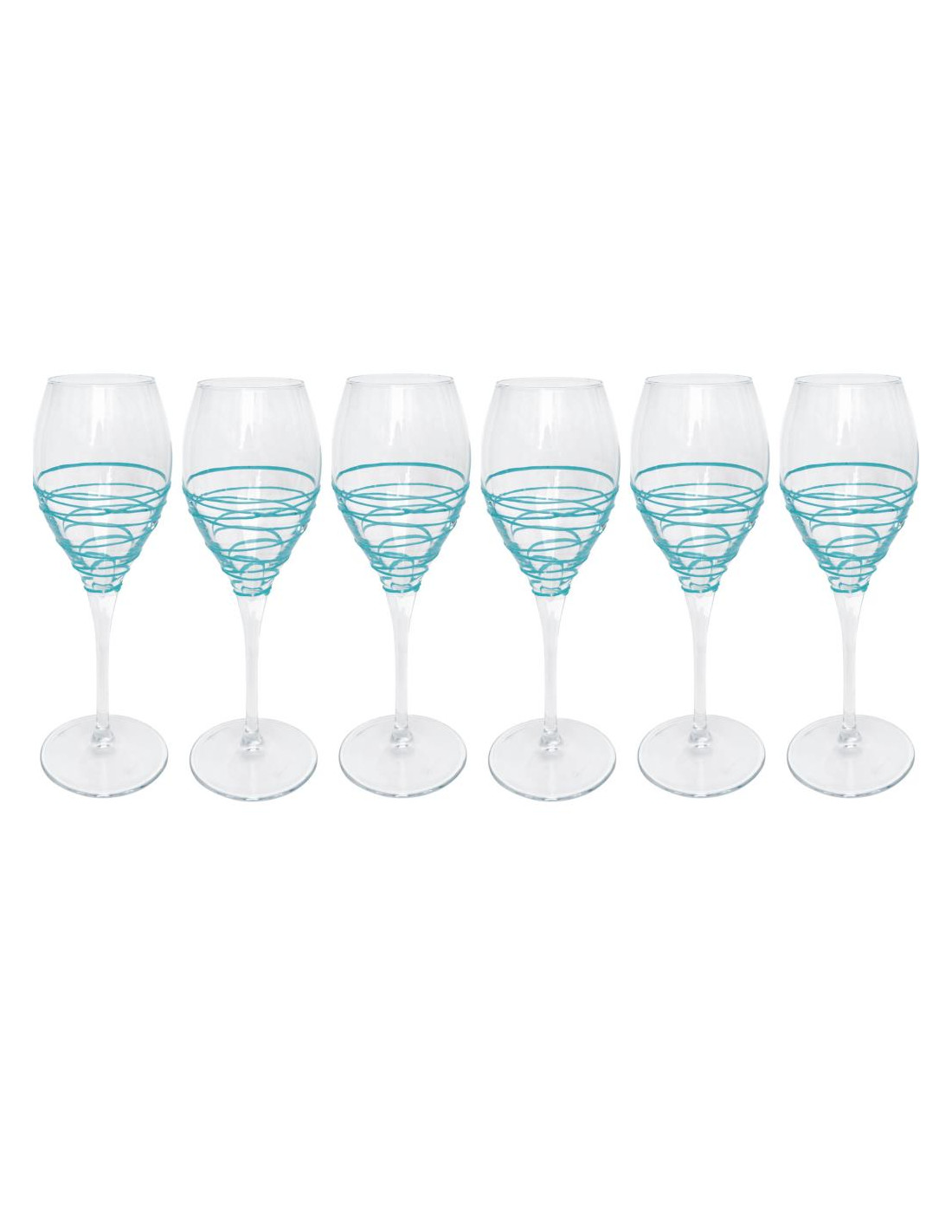 Set 6 calici vino in vetro decorato a mano artigianalmente da una spierale a rilievo