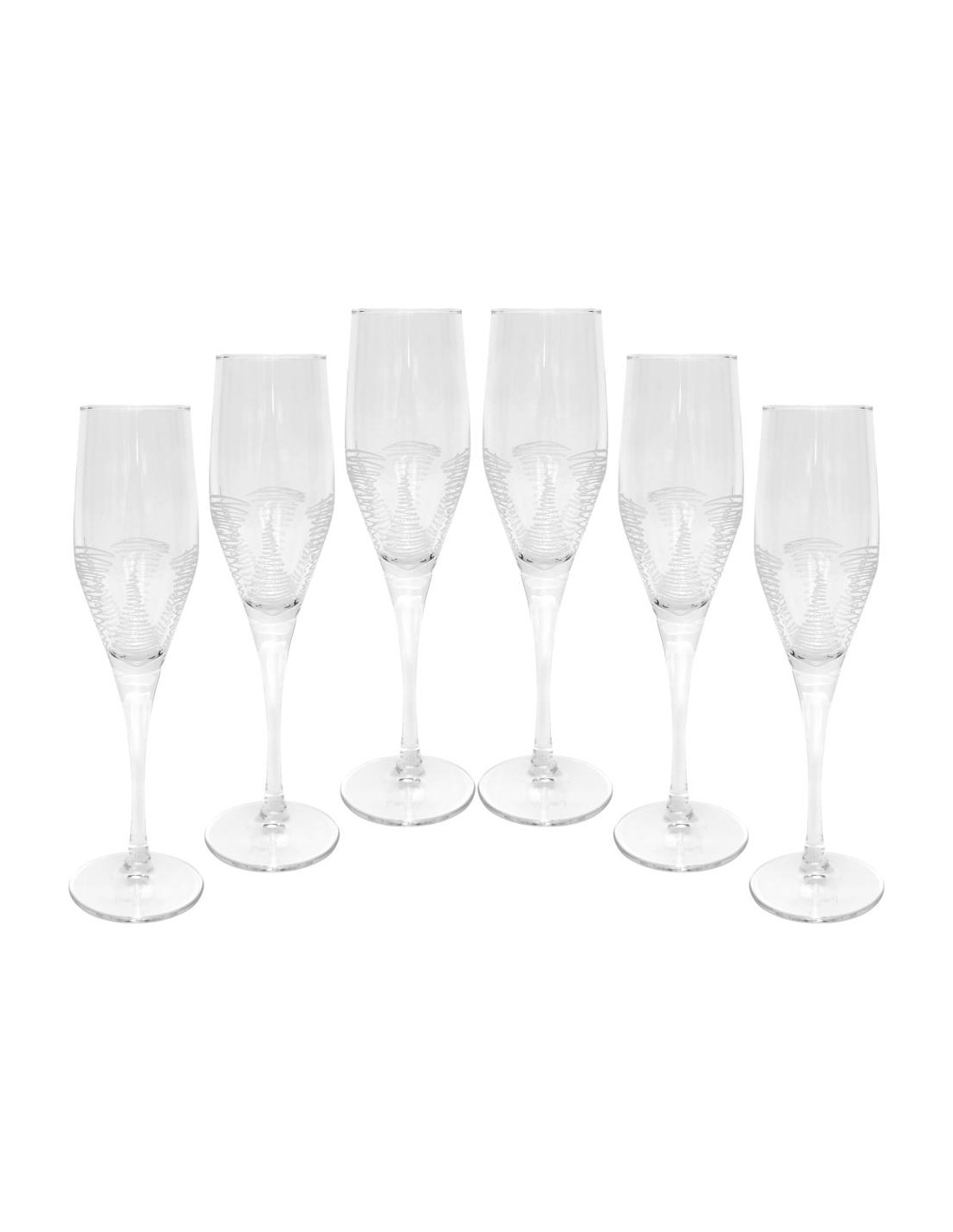 Set 6 calici flute in vetro tasparente con decorazioni
