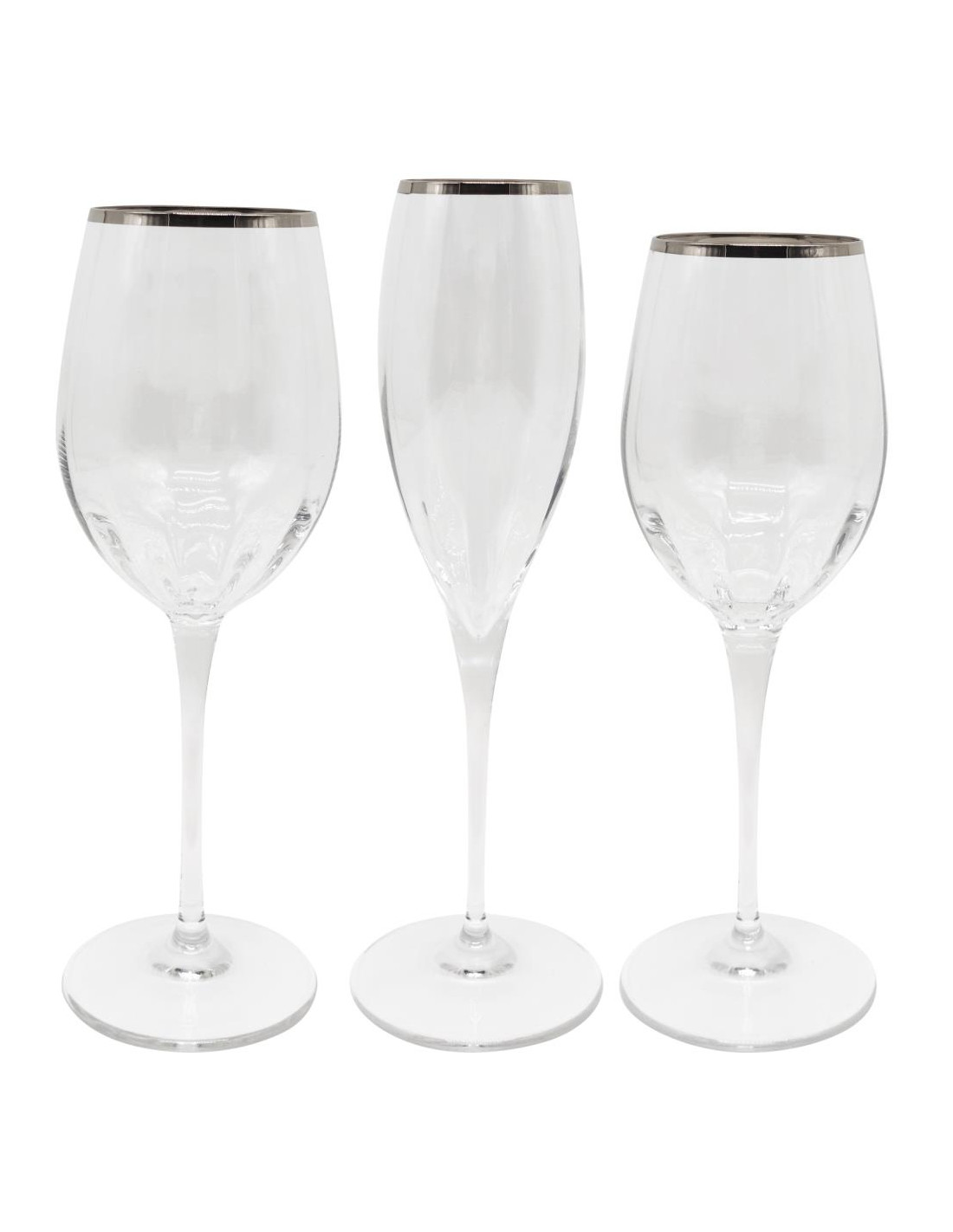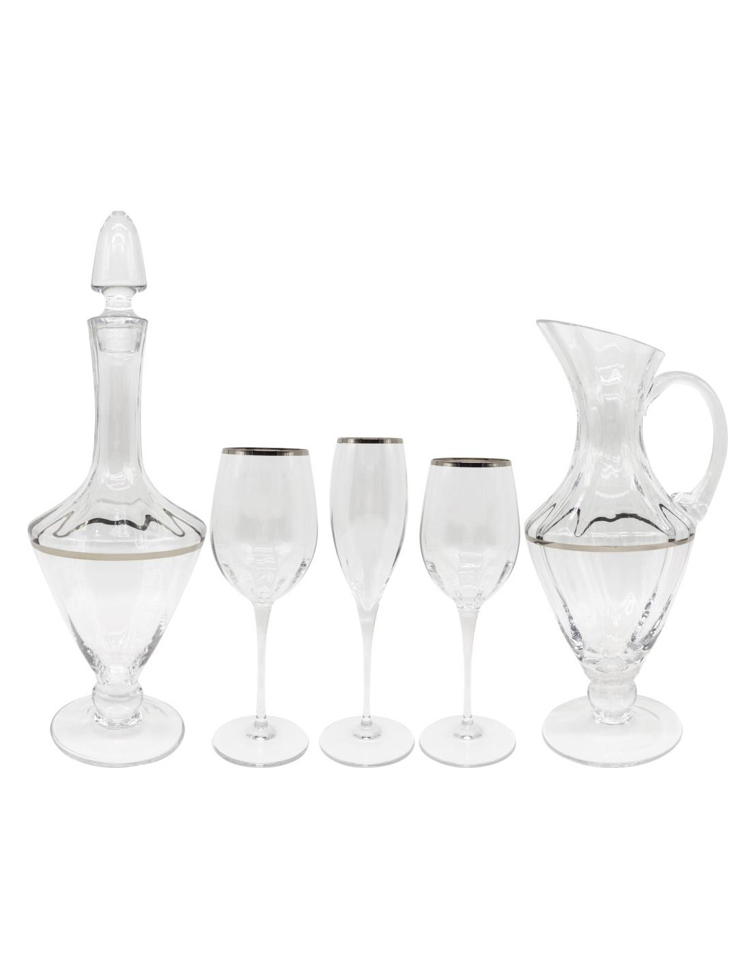 SERVIZIO CALICI FILO PLATINO PER 12 PERSONE IN VETRO TRASPARENTE