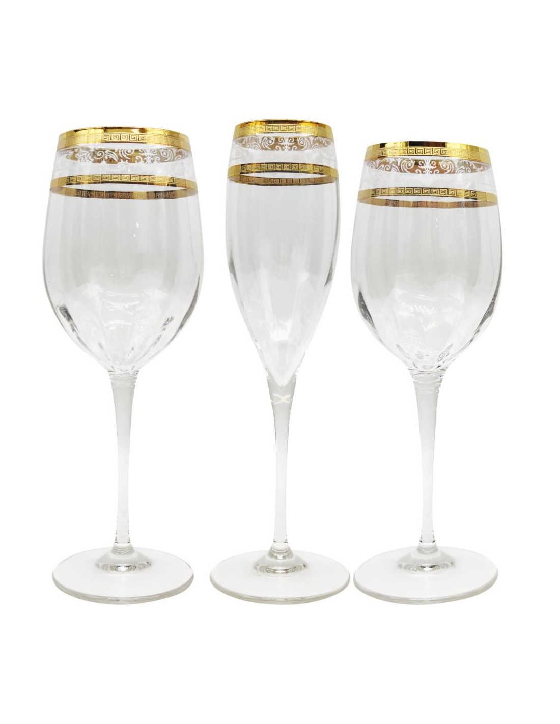 Una linea di calici moderna rifinita con filo oro e decorazione