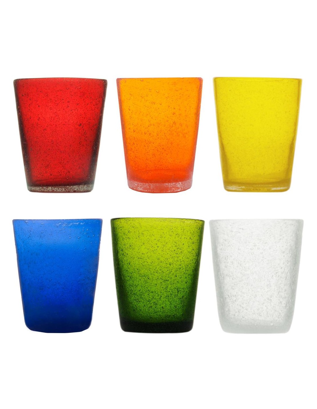 Set 6 bicchieri in vetro soffiato colorato nella massa.